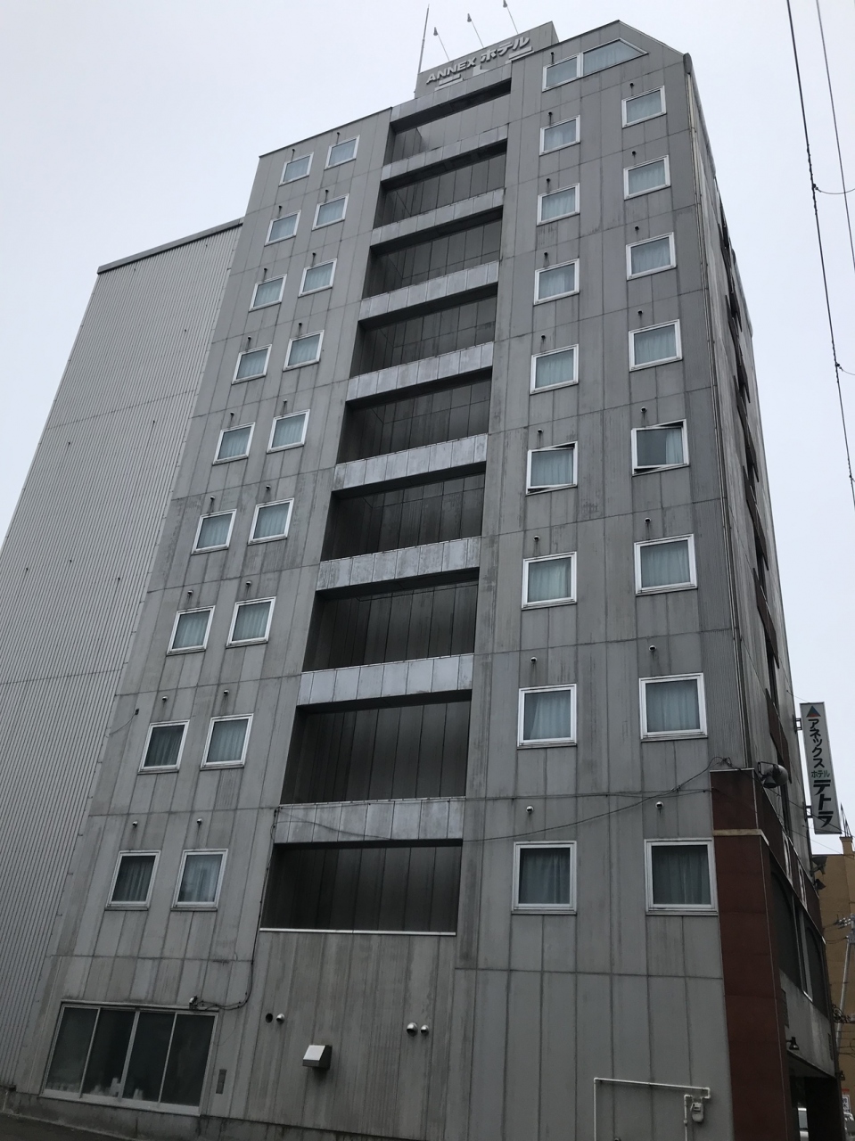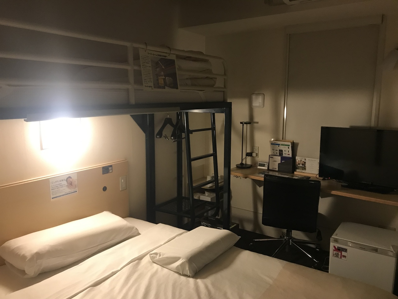 予約時にホテル検索サイトで函館市内のビジネスホテル最安料金でしたので予約。立地はJR函館駅からは路面電車で五稜郭公園前駅より徒歩7分ほどです。観光スポットの五稜郭も近く、駅まわりは飲食店や商業ビルもありにぎやかな雰囲気でした。ホテル外観はシンプルな感じで、中にはいってもこじんまりとした印象をうけました。。こちらのホテル独自の面白いサービスもありますので泊まられる方は自身があてはまるか確認してみてください。(気にされる方もいらっしゃるかもですのでサービスの内容は伏せておきます)シングル部屋はお値段相応にシンプルでした。翌日湯の川温泉へ日帰りで行こうとスタッフさんにお聞きしたら、系列ホテルが湯の川温泉街にもあるのでそちらを案内していただきました。