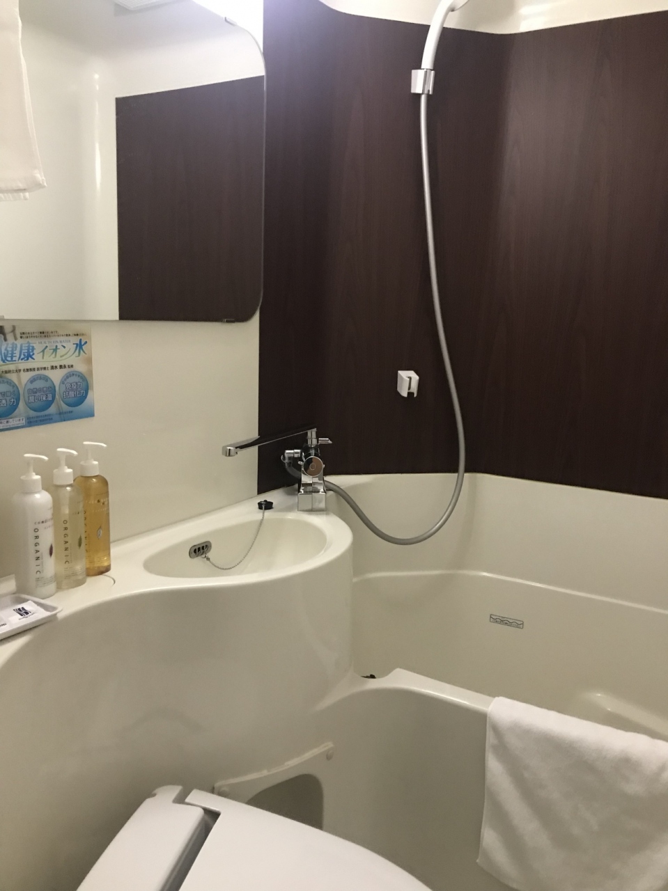 ホテルまでのマンション屋上に看板があるので感違いしますので気をつけてください。入り口は大通りひとつ裏になります。ホテル周りはコンビニあり。客室にはほとんどアメニティがないのでフロント周りで必要なものをいただくシステム。貸し枕あり。パジャマも1階で借りてください。バスルームアメニティはアルガンオイル配合などこだわった商品がおかれていました。シングル客室は至ってシンプル。室内照明もそうですが、バスルームもかなり暗めでした。窓からの景観はなし。シングルでも二段ベッド仕様です。無料朝食あり。6:30~8:30まで。8:00までの入店を推奨されていました。メニューは少な目ですが、お野菜、お肉、魚とバランスよい献立で朝からしっかり食事がいただけました。