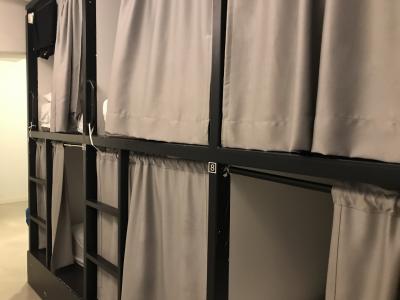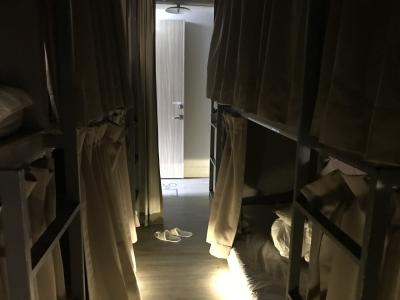 ドミはカーテン付きでプライバシーあり。各部屋にトイレ・シャワーがあり部屋をでる必要なし。ただwifiがフロントのみ。