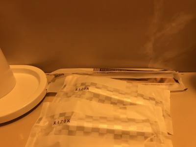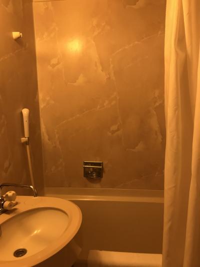 チェックインはできましたが外気の見える窓がなく、朝になっても部屋の電気がつかなくずっとうす暗いまま。