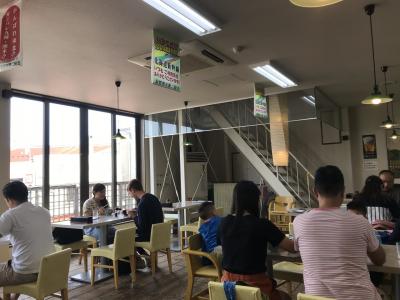 セルフサービススタイルです。1階でイートインも可能でしたが、2階はソファー席やおひとりさま席が充実していてゆっくり休憩できました。wifi対応でなかったのが少し残念。- 旅行時期