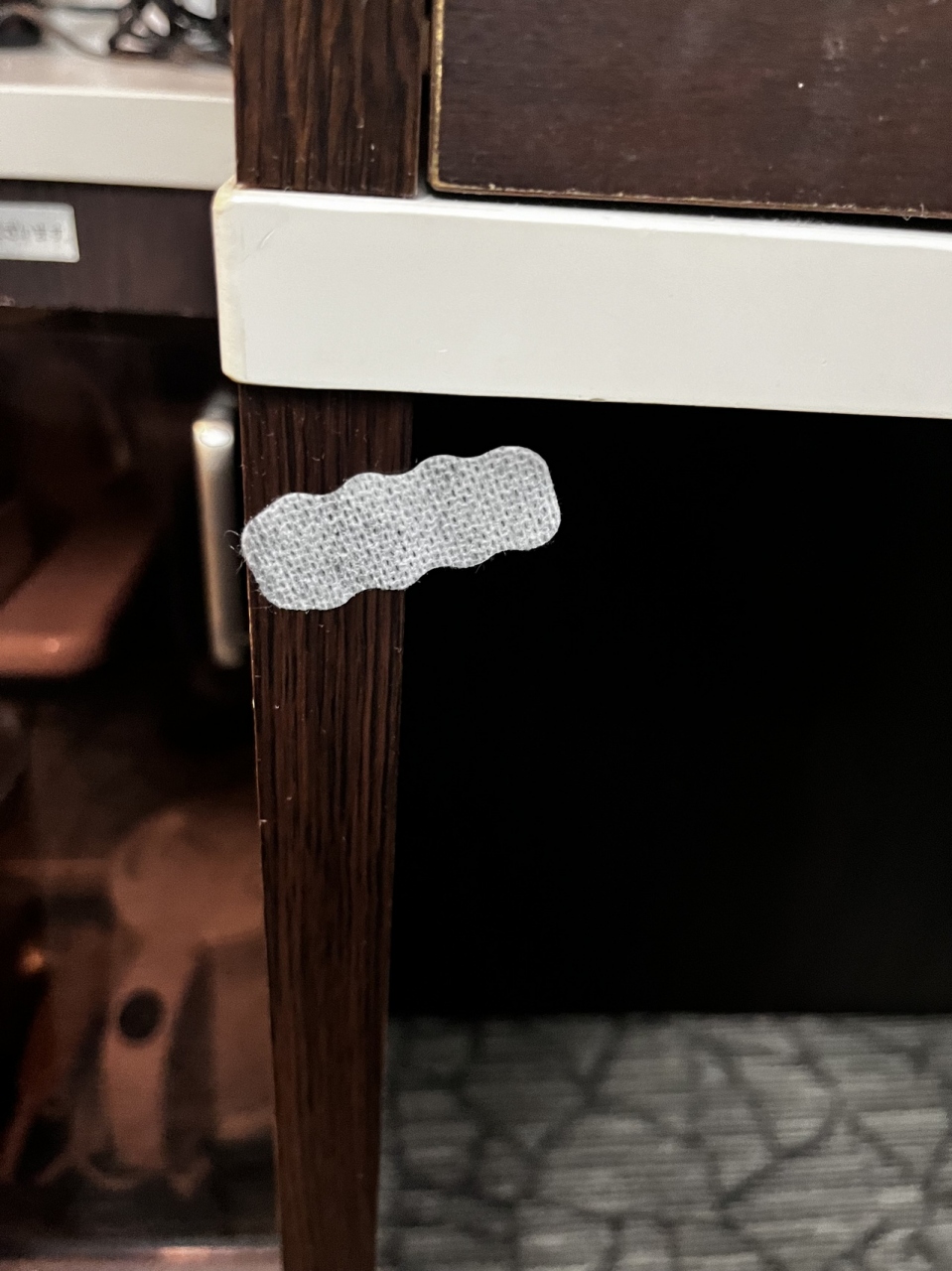 掃除もずさんで掃除も適当なのかテーブルになんかバンドエイトみたいな貼ってた。