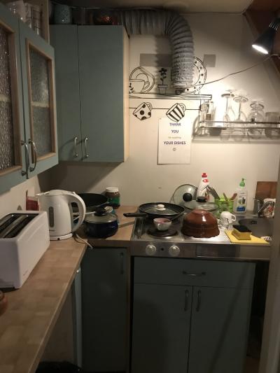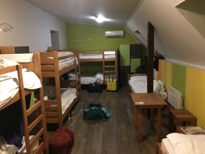 立地は確かによく、ドミの部屋からでも旧市街が見渡せ、時刻を知らせる鐘の音が聞こえた来て風情はありました。ただ10人部屋で予約したのに12人部屋に案内され「え?10人部屋では?」と聞いても「10人部屋は満室。12人部屋は10人泊まってないから」とそんな言い訳で部屋を割り当てられました。まぁ。立地はよく、寝るだけならと我慢できる範囲でした。キッチンは狭くて、やや不潔な感じでした。- 旅行時期