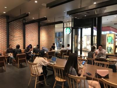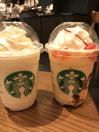 かなり大きいの店舗なので席もゆったりたくさんあり、平日の午後はそんなに混雑していませんでした。ガラス張りで開放的な雰囲気です。客層も海外からの旅行者や買い物で休憩中の若者まで多種多様でした。もちろん今年はやりのプリンアラモード・フラペチーノを注文しました。笑- 旅行時期