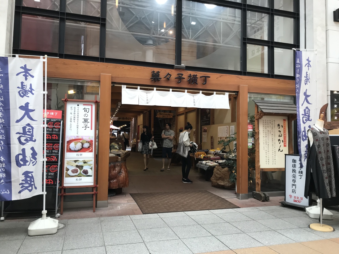 鹿児島出身の人に「あくまき」や「かるかん餡なしで」とか普段聞きなれない商品を頼まれて、地元の人に「ここなら買える」ということで行ってみました。中は広く2階はカフェ&ギャラリー。1階は昔ながらの伝統お菓子から、今風のお菓子お土産までそろっていてお土産購入にはとても便利でした。