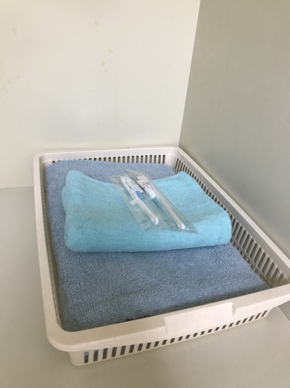部屋はシンプルです。アメニティも必要最低限の歯ブラシ・かみそり・ブラシがありました。