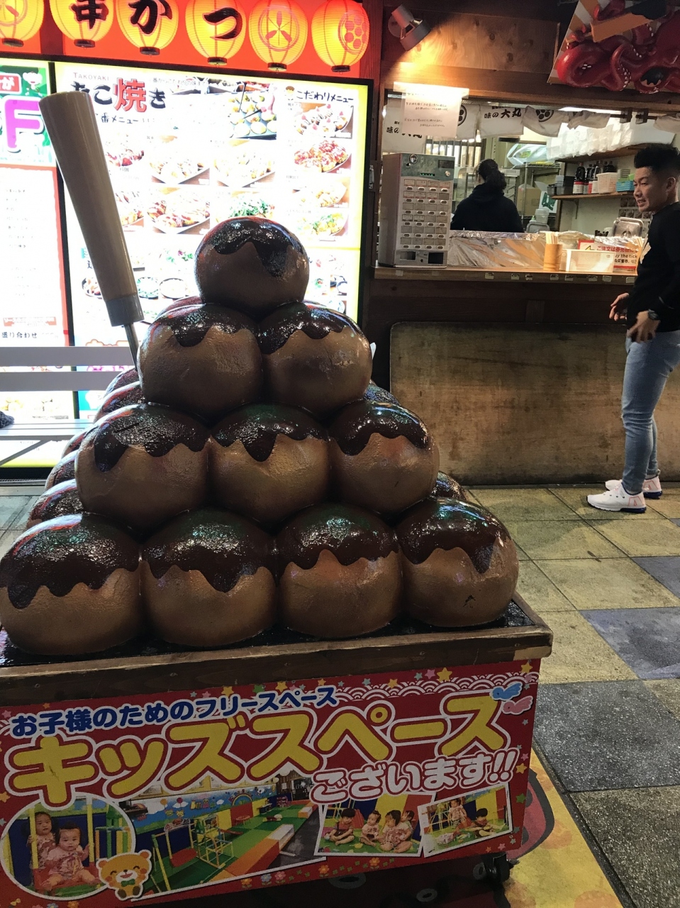 新世界界隈ではタコの巨大看板が目印でタコの看板下でたこ焼き食べる姿が海外からの人からも、インスタスポットになっています。夜8時くらいまでは行列ですがそれ以降は比較的空いてます。