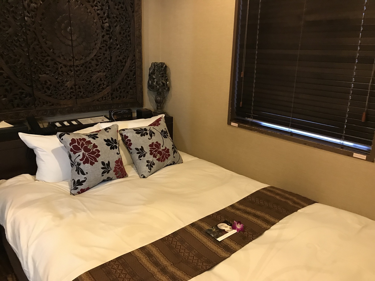 廊下もバリの環境音楽などが流れていてリゾート感がすごいです。部屋も洗面と寝室が独立していて女子にはうれしい作りです。寝室はリゾートホテルによくある薄い白いカーテンみたいなのがベッドを取り囲んでかわいいです。