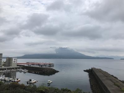 車がないとやや不便な場所にありました。ホテルへはいると桜島側がガラス張りで開放的な感じ。天気がよければ綺麗に桜島が見えたと思います。(曇りでした 汗 )