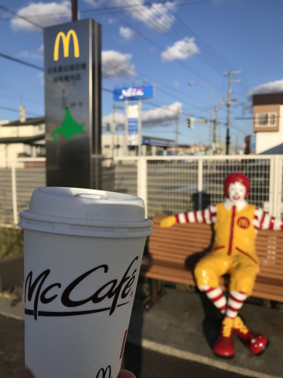 日本最北端のマクドナルドです(店の外のドナルド像の隣に表記看板がありました)