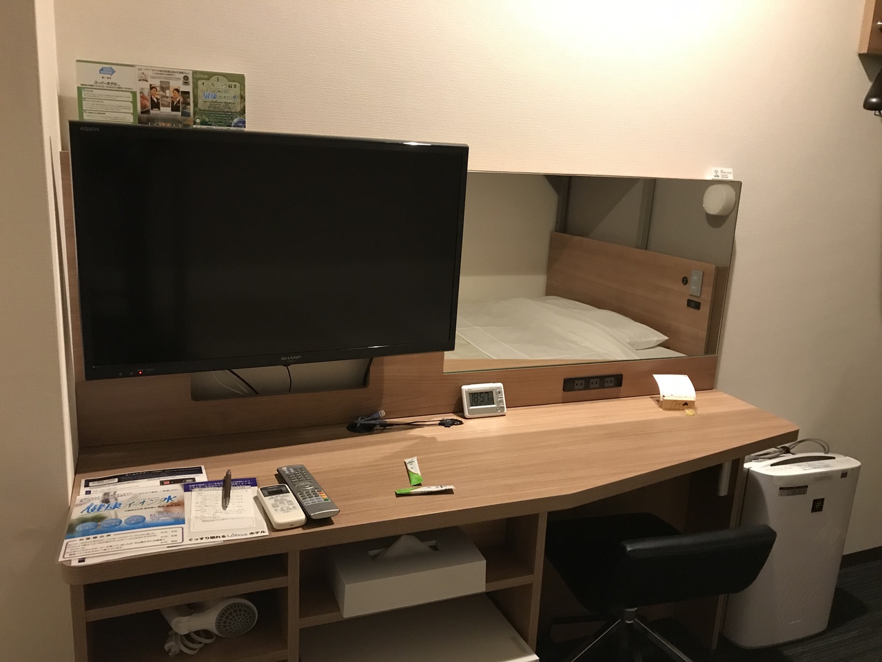 1階にローソン。フロントは2階です。チェックインして部屋にはいると名前いりの「リピート利用ありがとうございます」とのメッセージがあってびっくりしました。