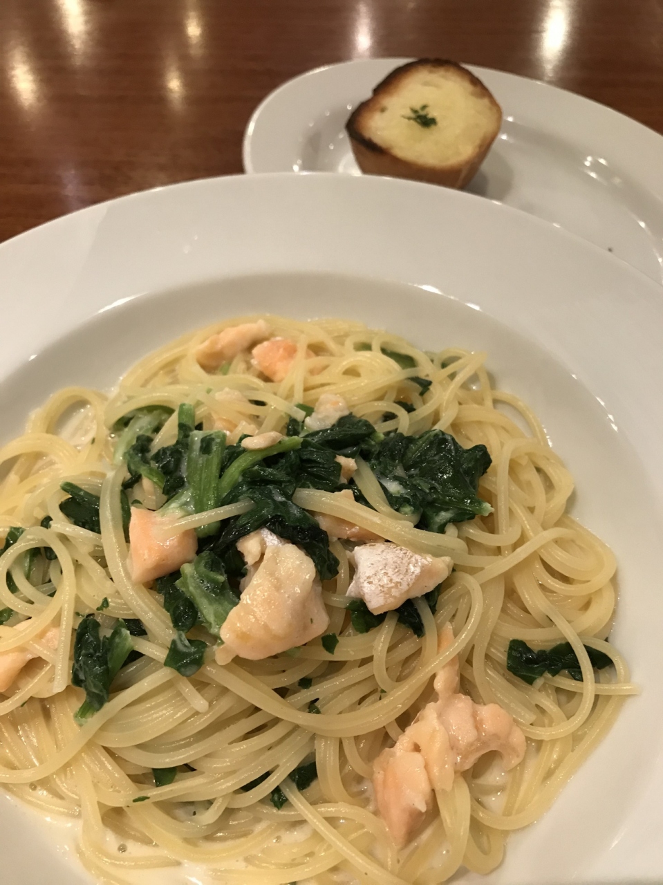 ランチタイムにはいりました。心斎橋筋商店街の通りにありますが地下に降りていくスタイルでわかりにくいのか、またはややランチタイムはずしたせいか空いてました。リーズナブルなランチセットですが日替わりにしたらドリンクバーがついて690円。この立地でこのお値段は非常にリーズナブルです。オプションでガーリックトーストなども100円の驚きのお値段でした。