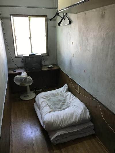 ドアを開けたとたん絶句します。ほんとに布団一組がおけるスペースのみ。