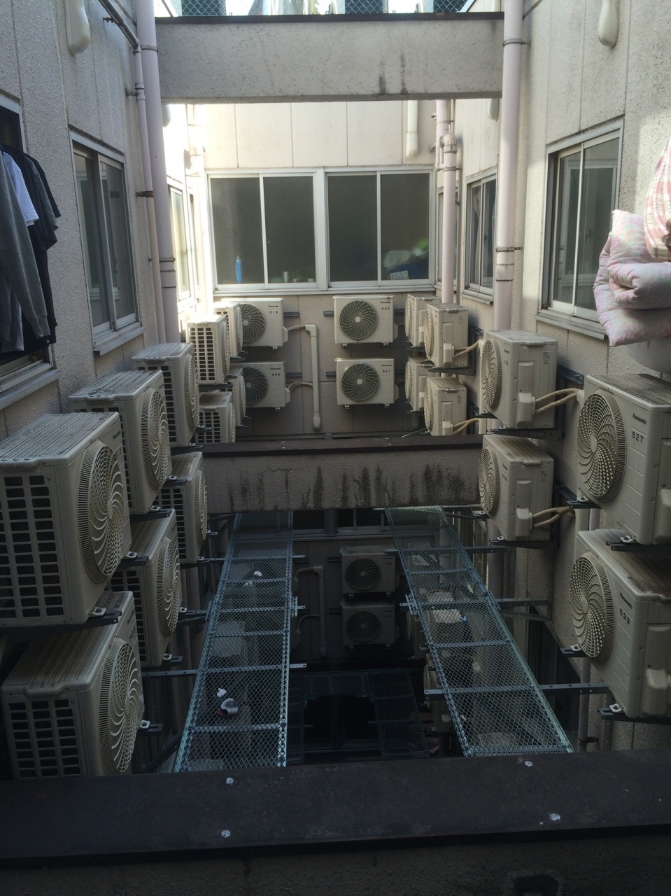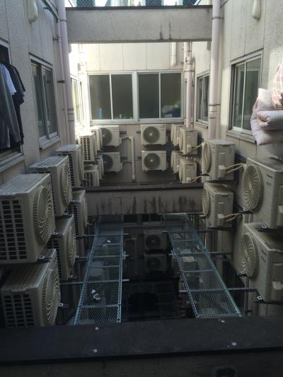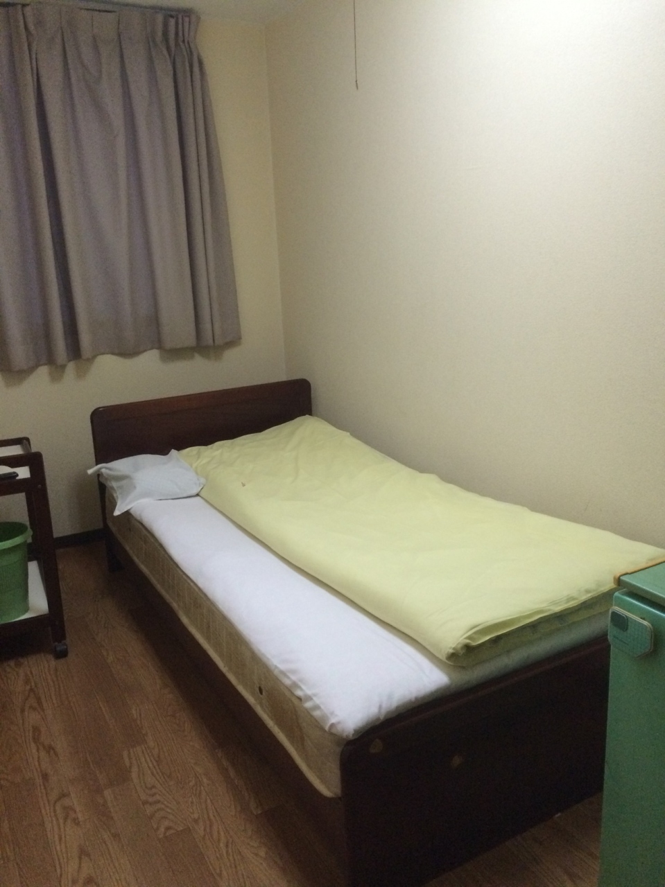 シングルはベッドとテレビ・A/C付。各フロアーに共同トイレはありました。