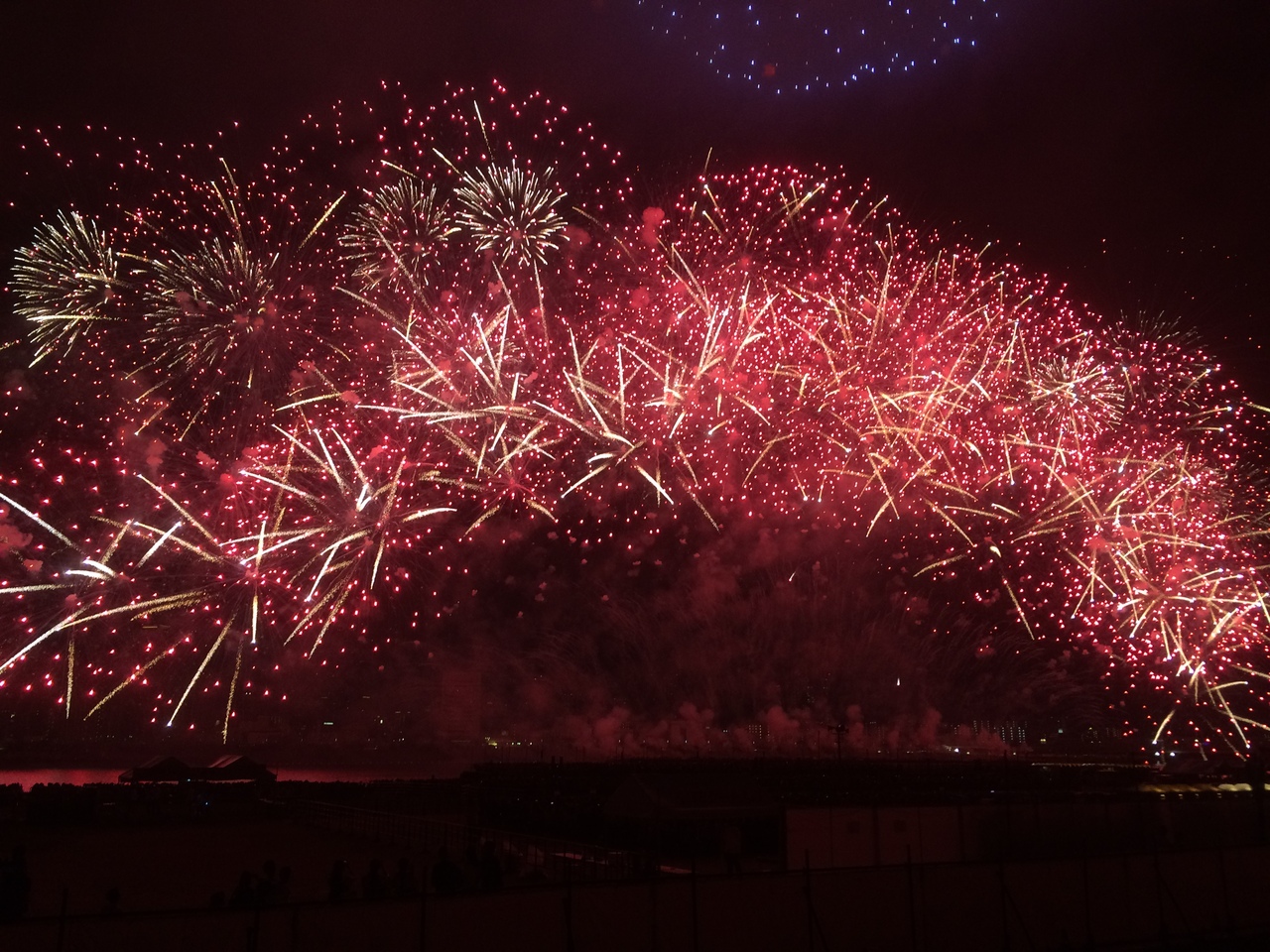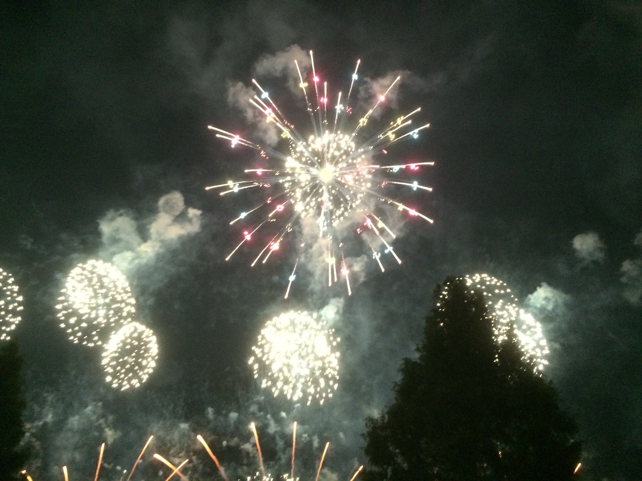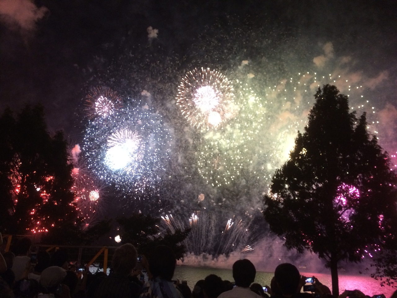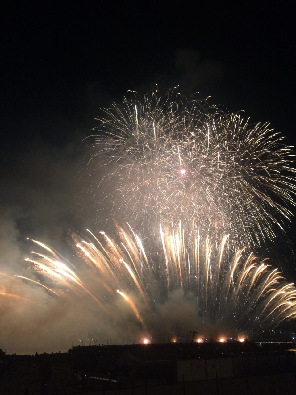 花火は目の前で大きく広がり、まるで上から覆い被さるようなイメージで大迫力でした。