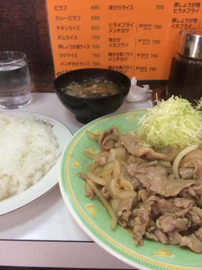 カウンターだけの小さいお店でおじさん(おじいさん??)一人がほとんど切り盛りしてました。友達はカレーライス。ぼくはしょうが焼き定食をいただきました。