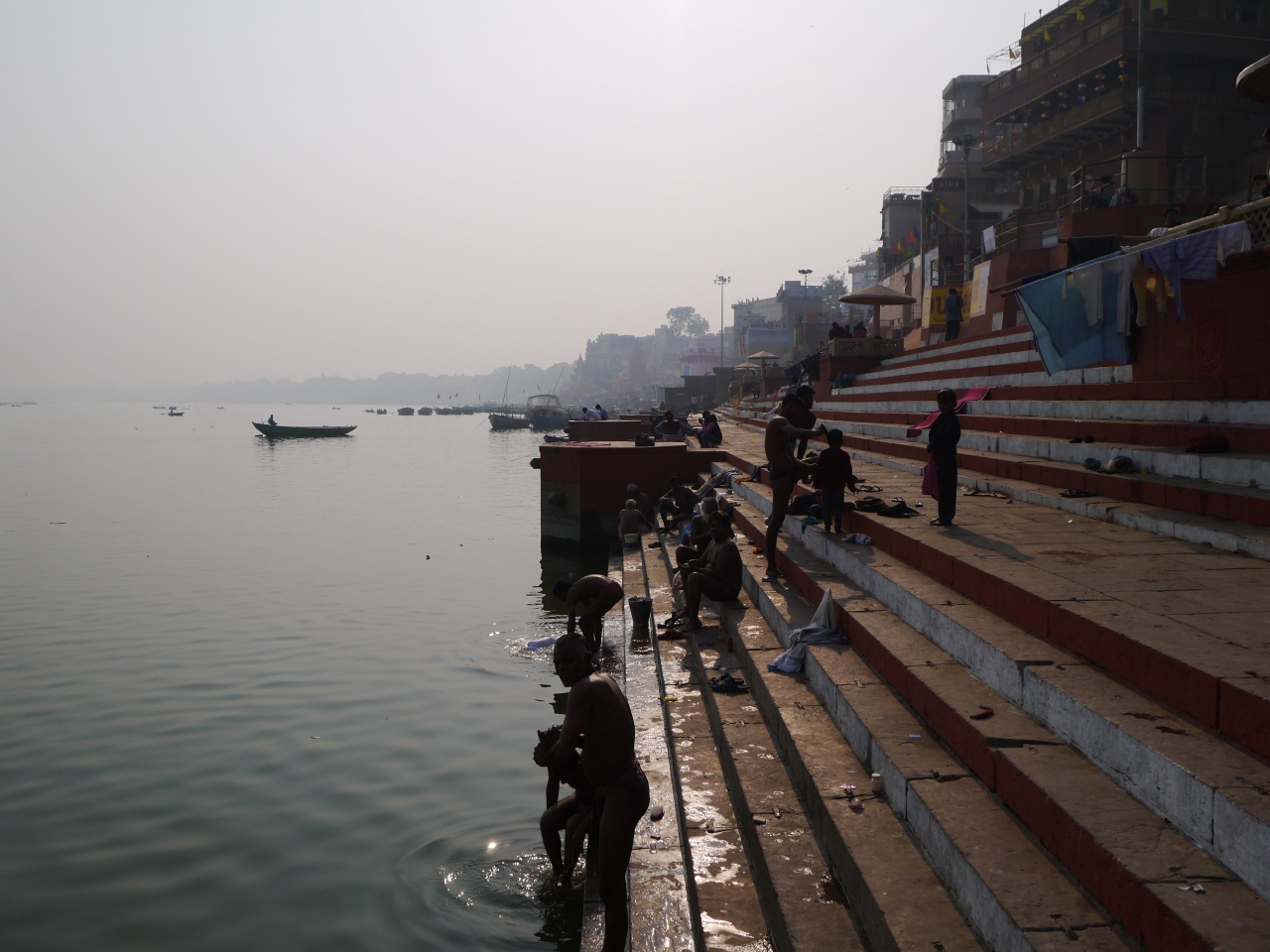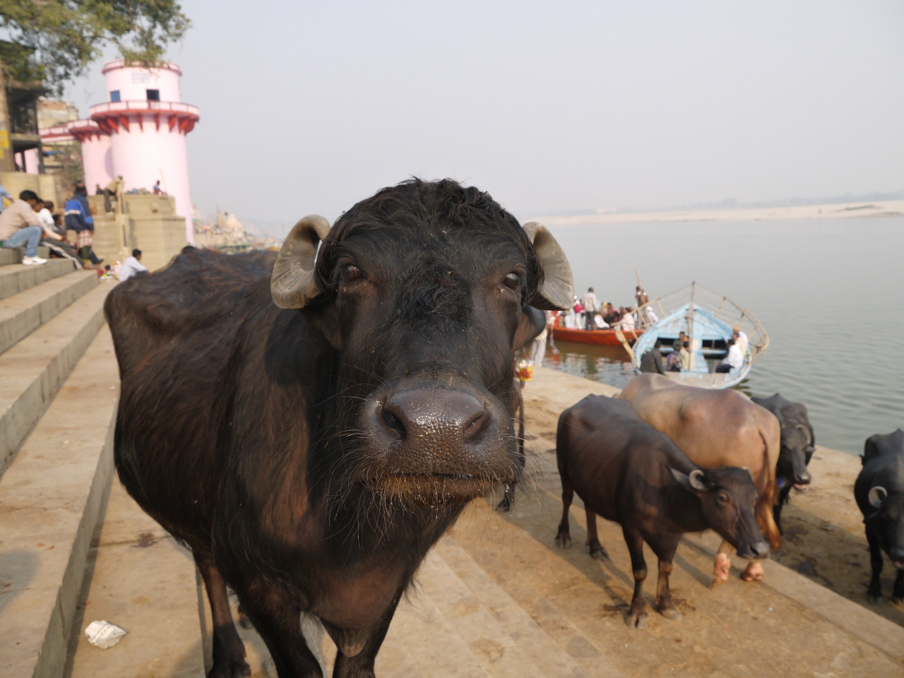 死体を焼かれた灰が流され、その同じ川で人間が沐浴していて、さらに牛が水浴びしてるかと思ったら、その先で食器洗ったり、洗濯をしてる人。