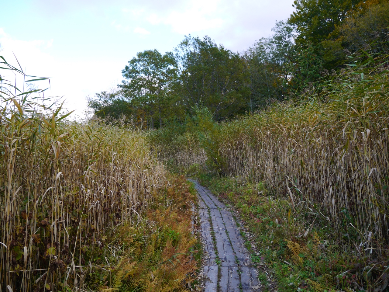 沼の上にずっと橋がかけてあり木々をかきわけ、かきわけ歩いていきます。