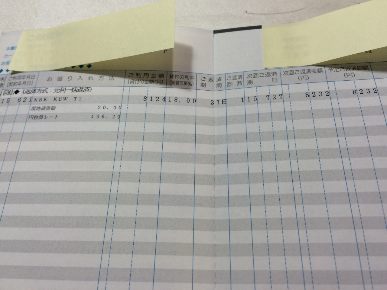 帰国して請求金額を見ても1D=406円くらいの計算で利息も100円足らずです。