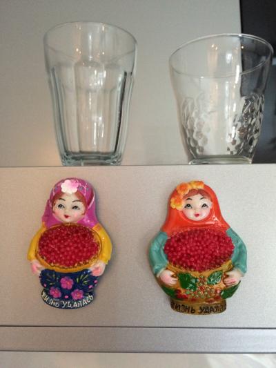 ほとんで現金の手持ちがなく、いいお土産があればくらいのつもりでぶらぶらしていたらかわいいマトリョーシカ柄のマグネット発見。