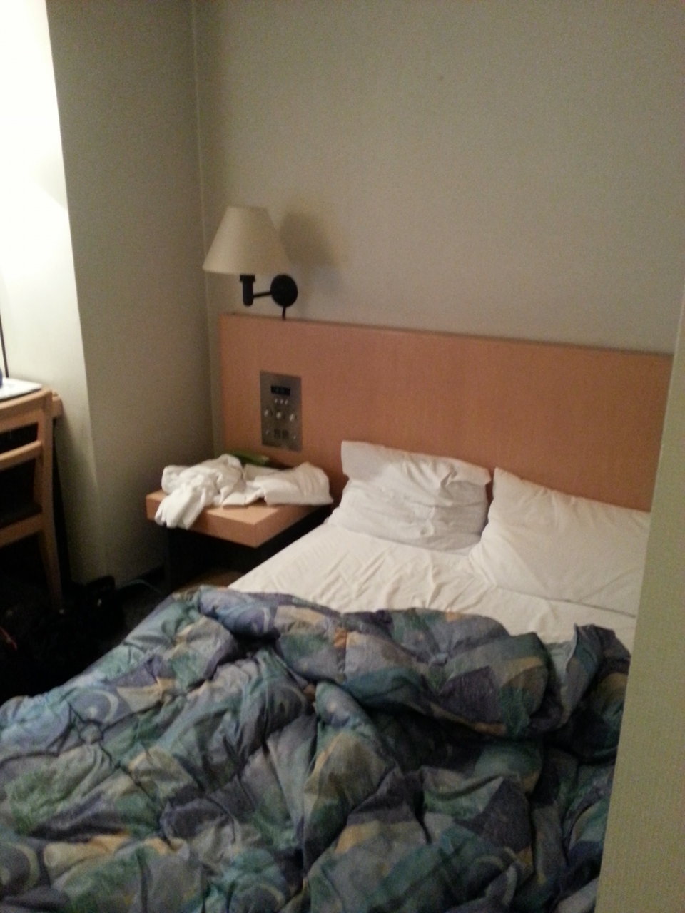 案内された部屋は窓がなく牢獄みたいな感じで、変えてほしかったけど遅かったので1泊だけなんであきらめて寝る。