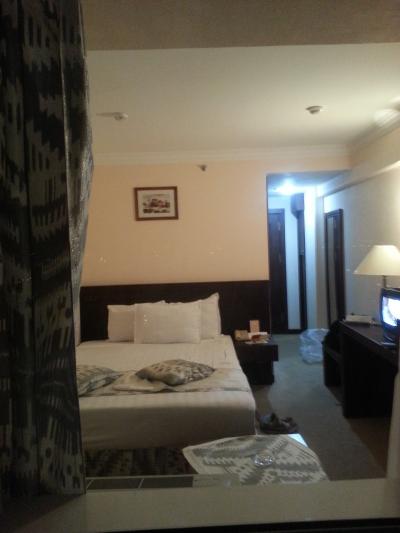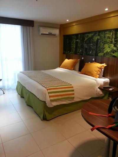 このクラスのホテルはだいたいベッドだけでスーツケースもおけないくらい狭いですが手狭感もなく滞在できました。