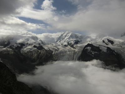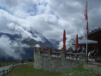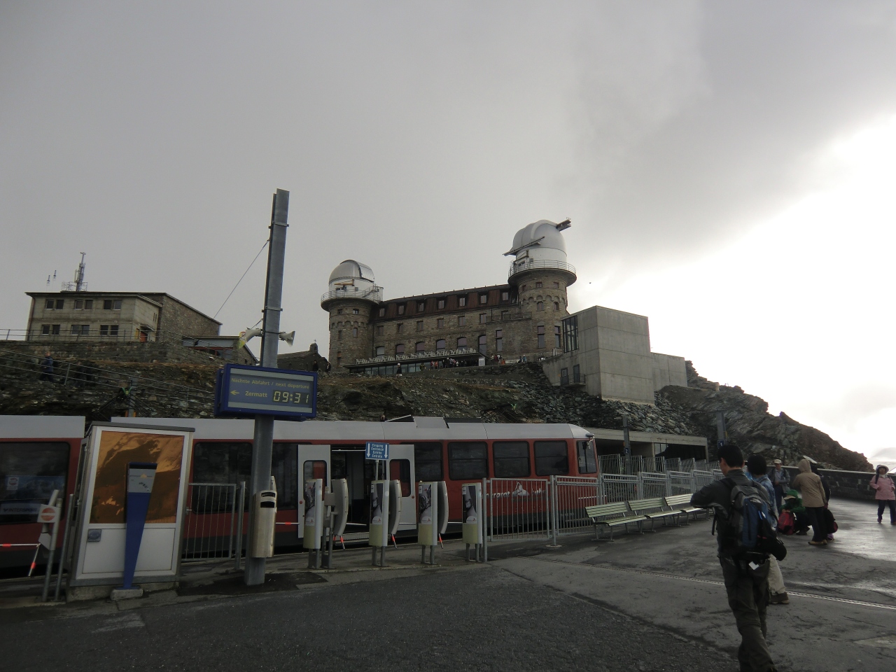 駅のすぐ上にあるホテル「3100 Kulmhotel Gornergrat」の先の展望台からはスイス最高峰のモンテローザ(4634m)など4000m級の山々やその間を流れるゴルナー氷河などのいくつもの氷河を見ることができます。