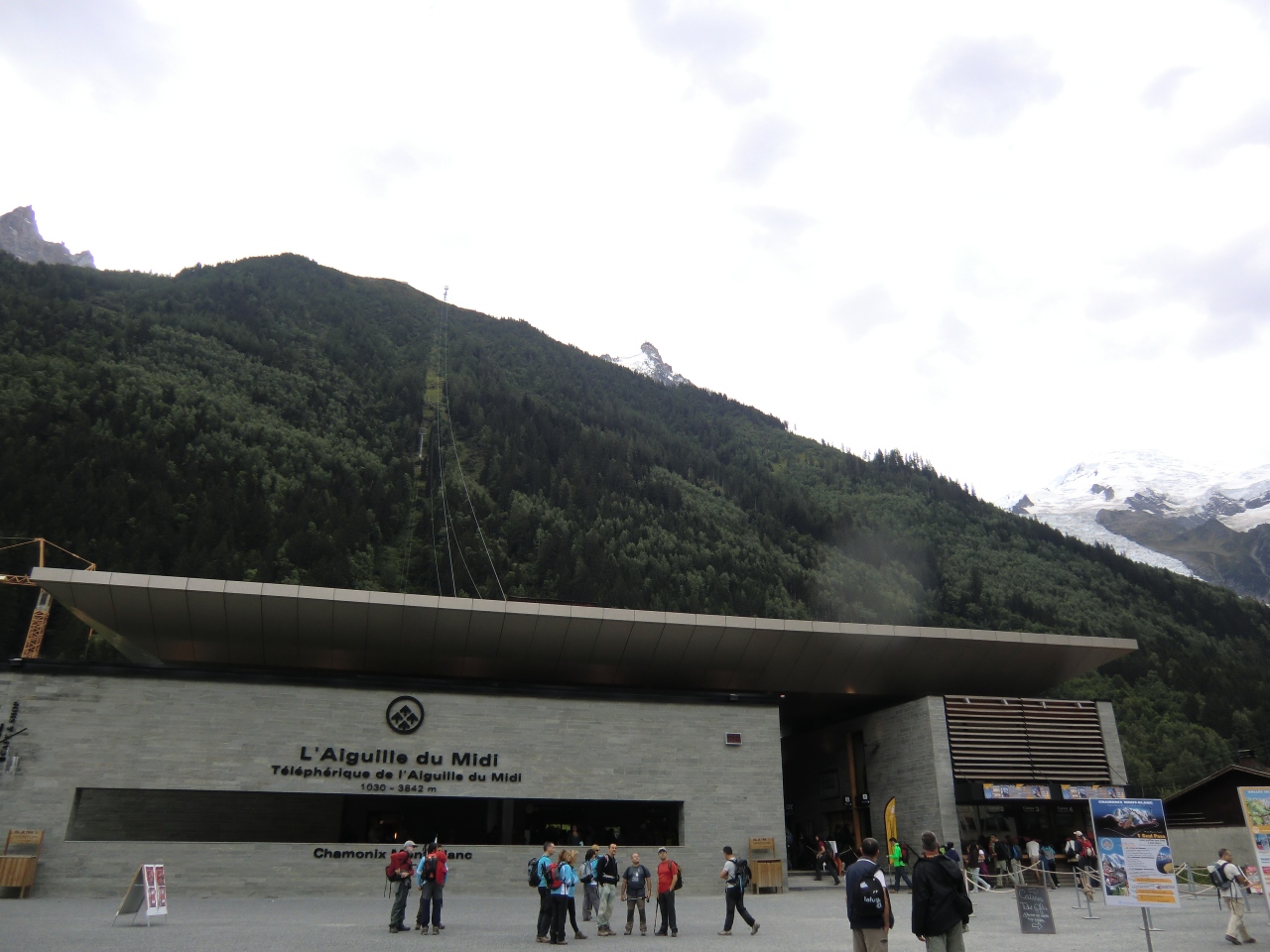フランス側のシャモニから途中駅プラン・ド・レギーユで乗り換えてロープウェイで上りました。