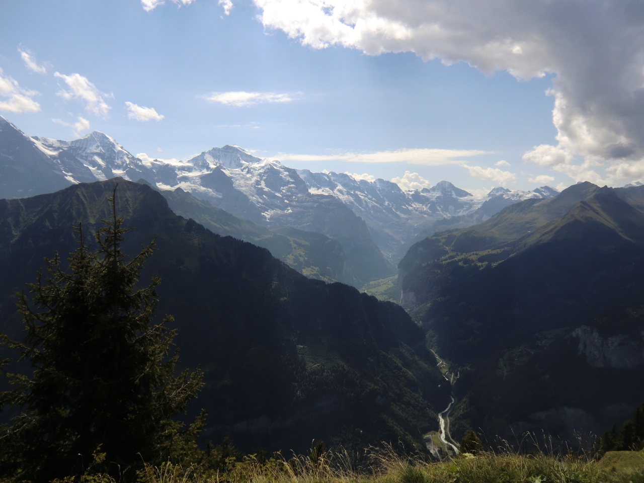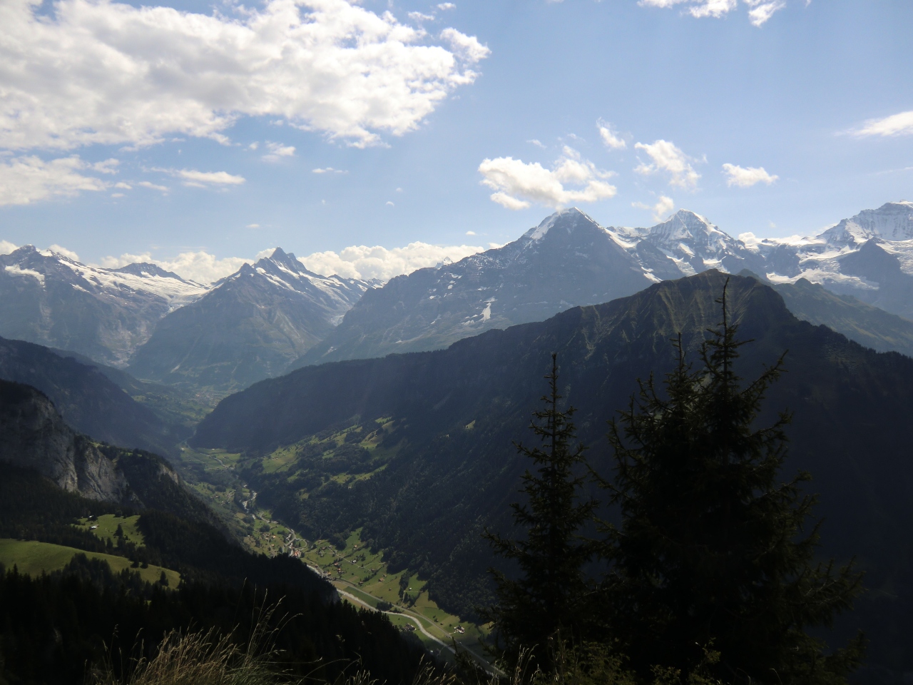 シーニゲプラッテからはアイガー、メンヒ、ユングフラウなどの山々はもちろんのことグリンデルワルトやラウターブルネンなど谷間にある村々まで見渡すことができ、ガイドブックに載っているような解説図そのままの景色が望めます。