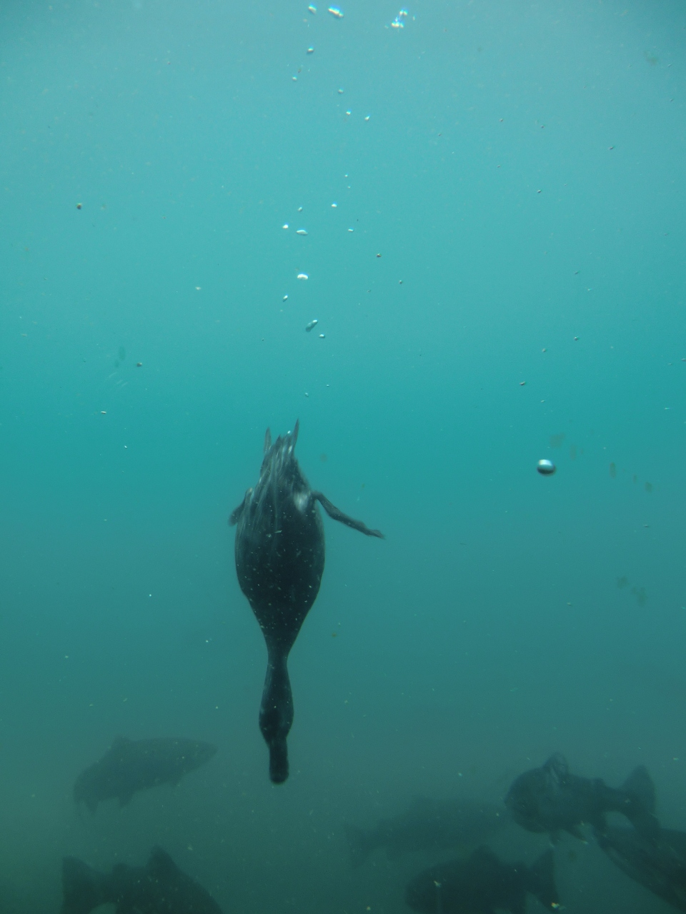 ワカティプ湖の桟橋の下にある展望室でワカティプ湖を泳ぐウナギやサケ、マスを眺めることができます。