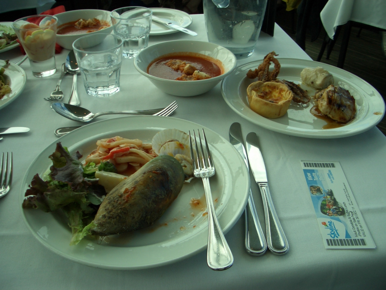 ランチはビュッフェでムール貝など魚介類から肉料理もあります。