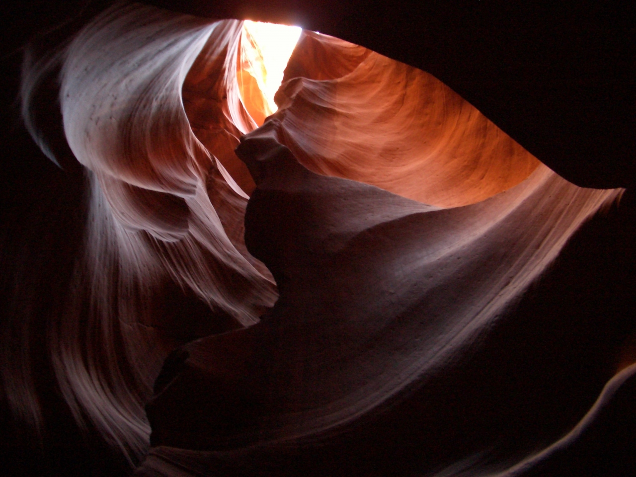 アンテロープキャニオンは鉄砲水によって螺旋状に削られた小さな峡谷です。