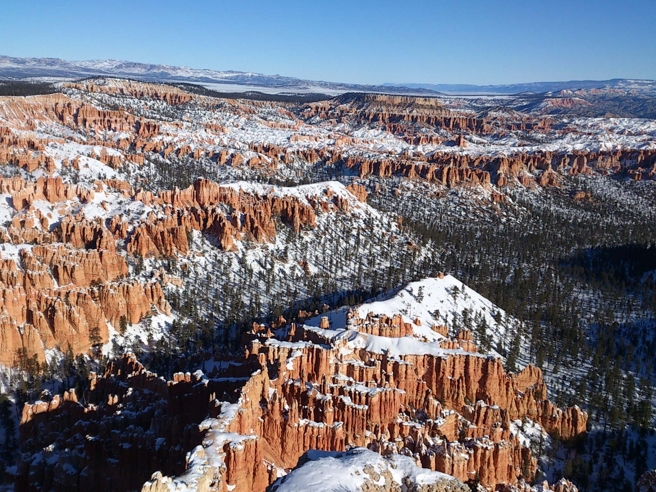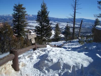 訪れた時(1月)は雪が積もっていて軽装で歩くことはできなさそうでしたが、ブライスポイントからの白い雪が積もったフードゥーの眺めはすばらしいものでした。- 旅行時期