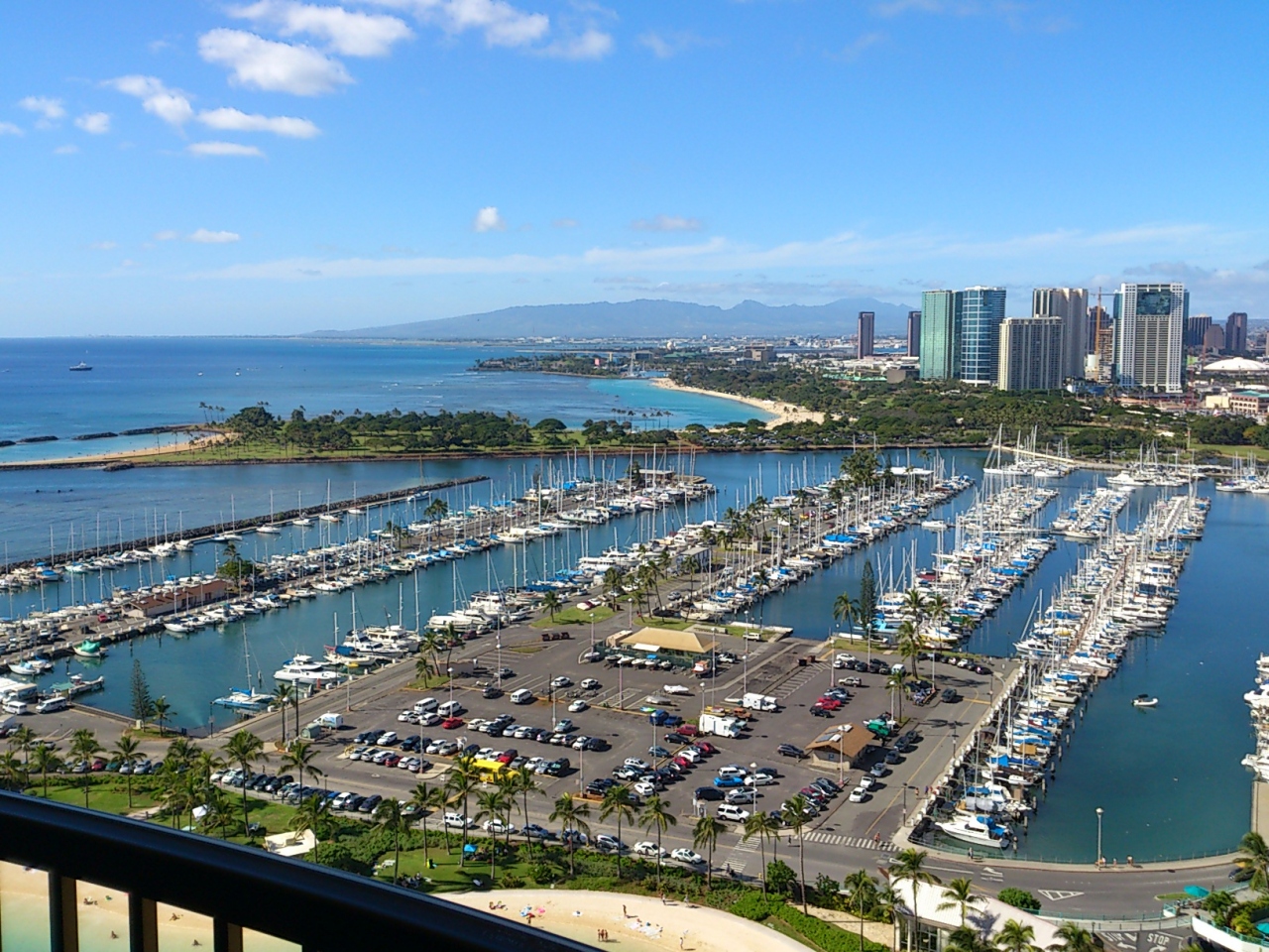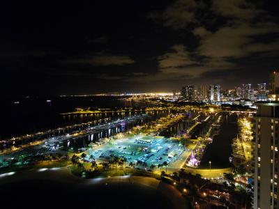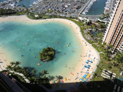レインボータワー28階のラグーン側に宿泊。ラナイからは真下にラグーンとハーバーが、夜は夜景がきれいに見え、清潔で涼しく、とても快適に過ごせました。年末年始の宿泊だったので大晦日の夜9時頃から1時間おきにカカアコパークの方に花火が上がるのも見えました。バスルームはバスタブ付きの取り外せる可動式シャワーでした。アラモアナとワイキキ中心地の間でどちらにも近くはないですが歩けない距離ではなく、バスがなかなか来ないときは歩いた方が早いかなという感じでした。