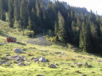 インターラーケン東駅からBOBで1駅のヴィルダースヴィルから出発するシーニゲプラッテ行きの登山列車で約50分。
