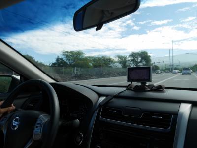 改めまして、しゅっぱ〜つ♪初めての左ハンドル・右側通行に、緊張がピーク...