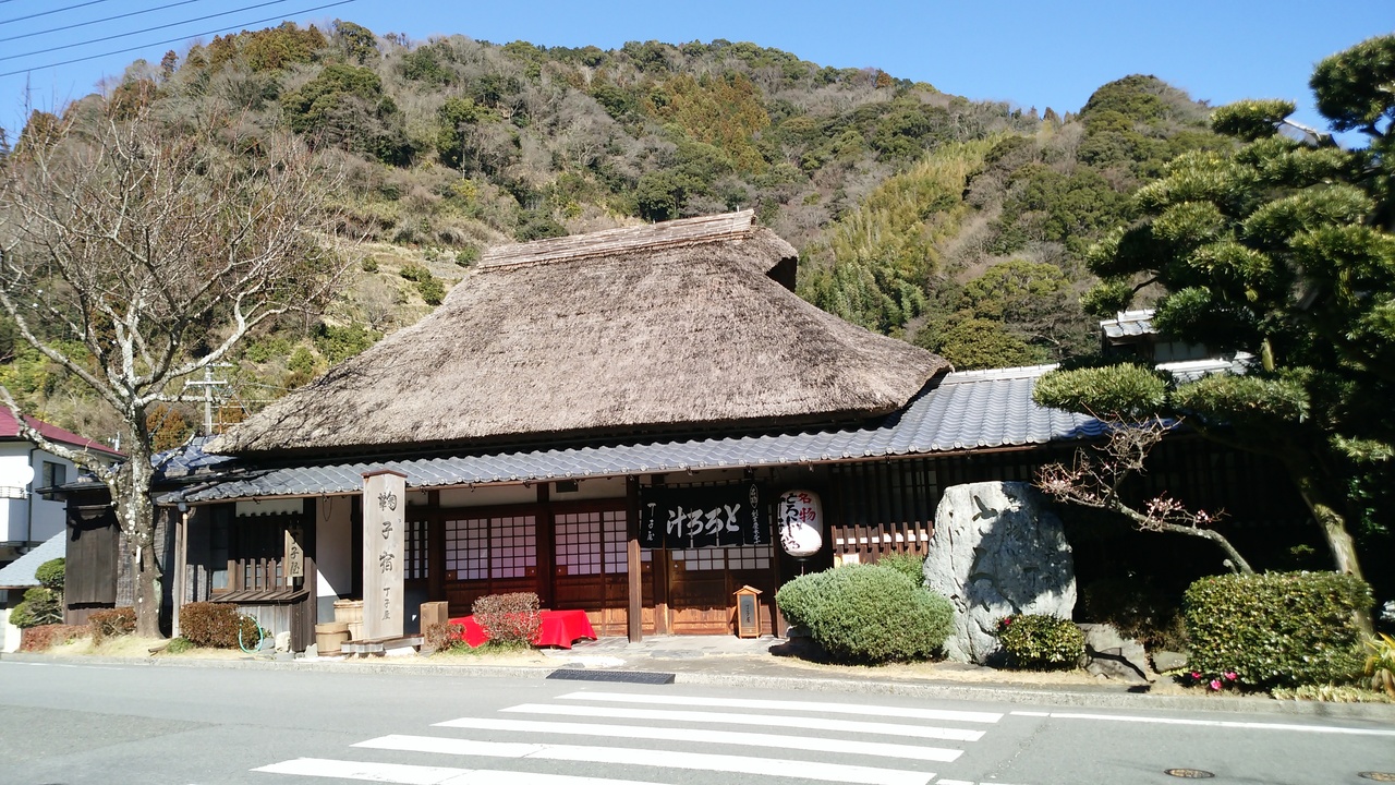 茅葺き屋根が、歌川広重の浮世絵を彷彿とさせます。