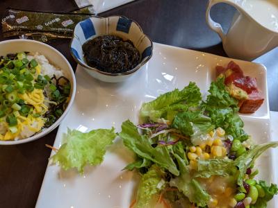 食事も、まあ美味しい、サラダをよく食べました、ベーコンはサイコロ。- 旅行時期