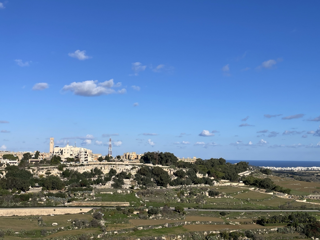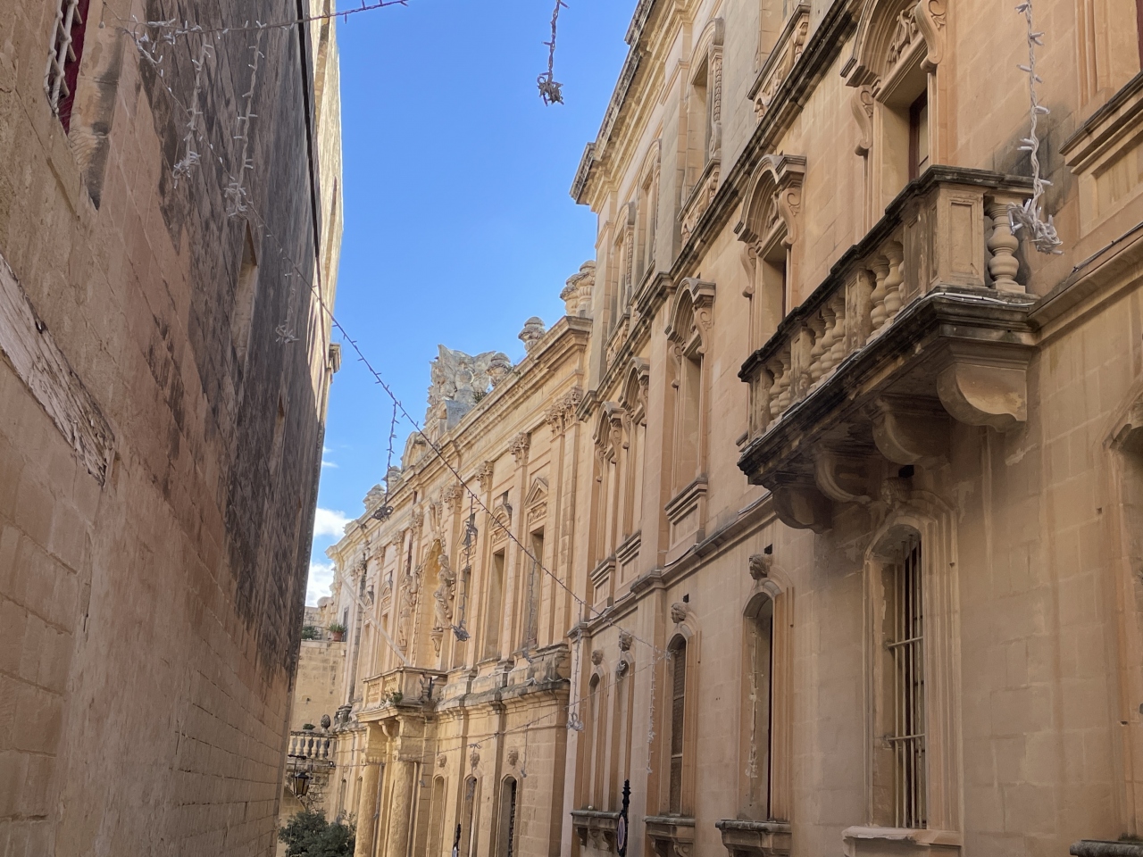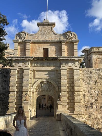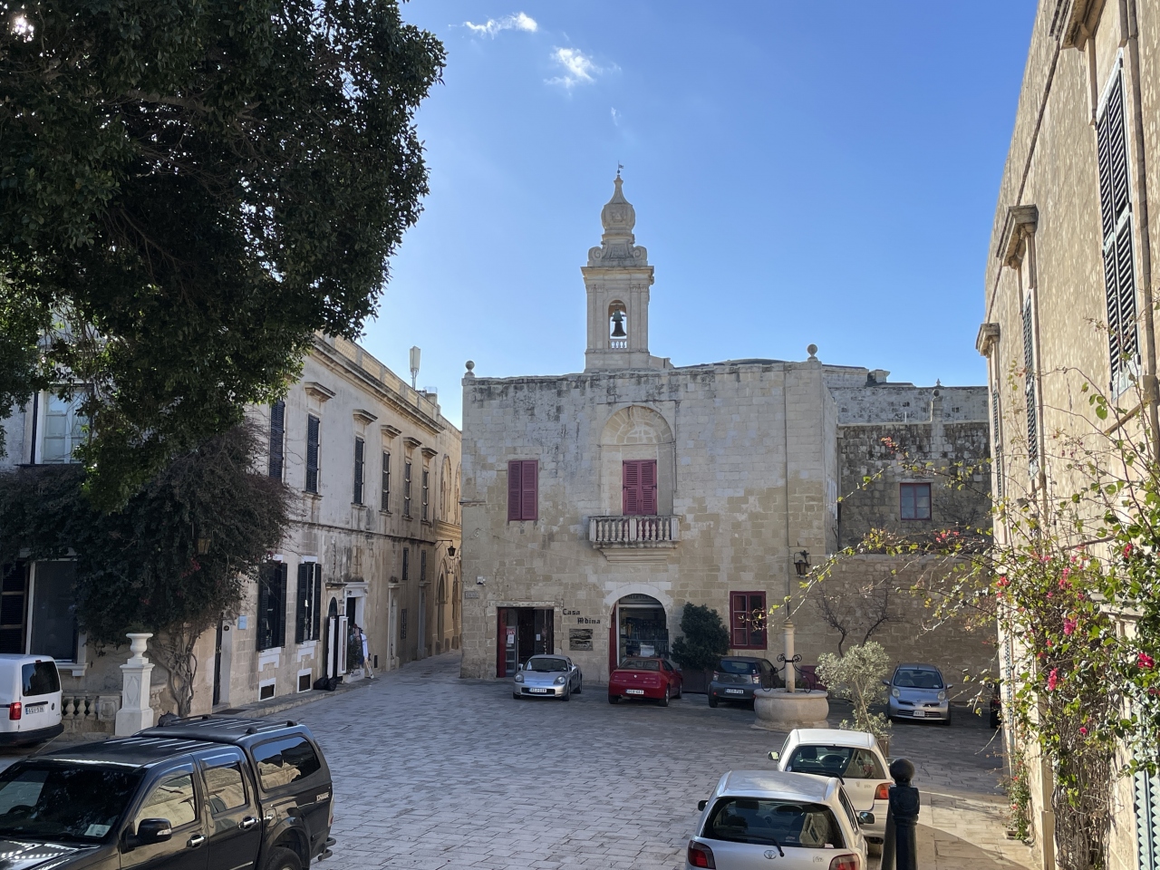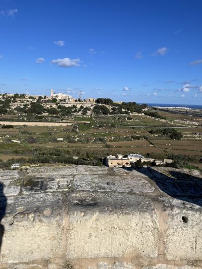 イムディーナのゲートを入ってメインストリートというには可愛らしい通りを進んでいくと突き当りがこちらの広場になります。広場の先は見晴らし台になっていて、マルタ島の景色が海まで見渡せます。ヴァレッタの街も見えました。