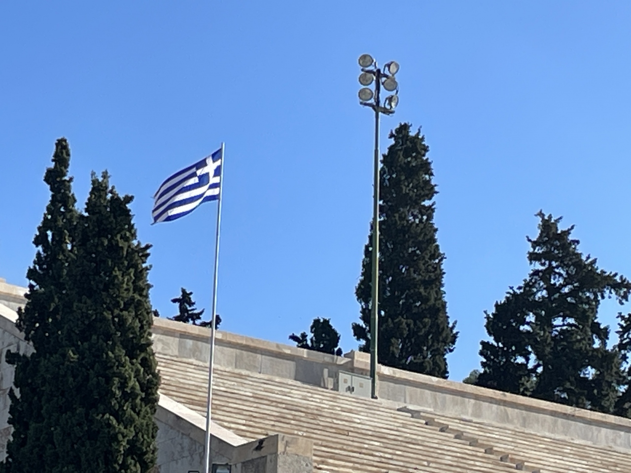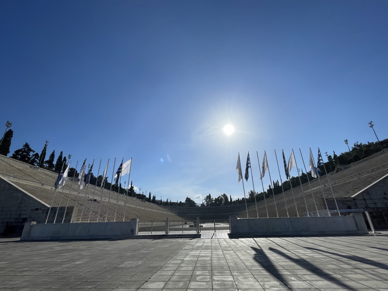 観客席は寄附によって、総大理石の観客席だそうで、日に当たって白く輝いて見えました。