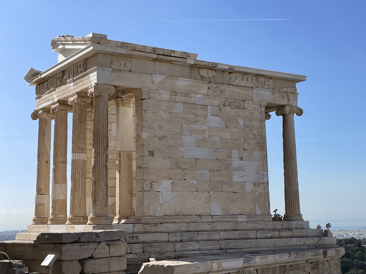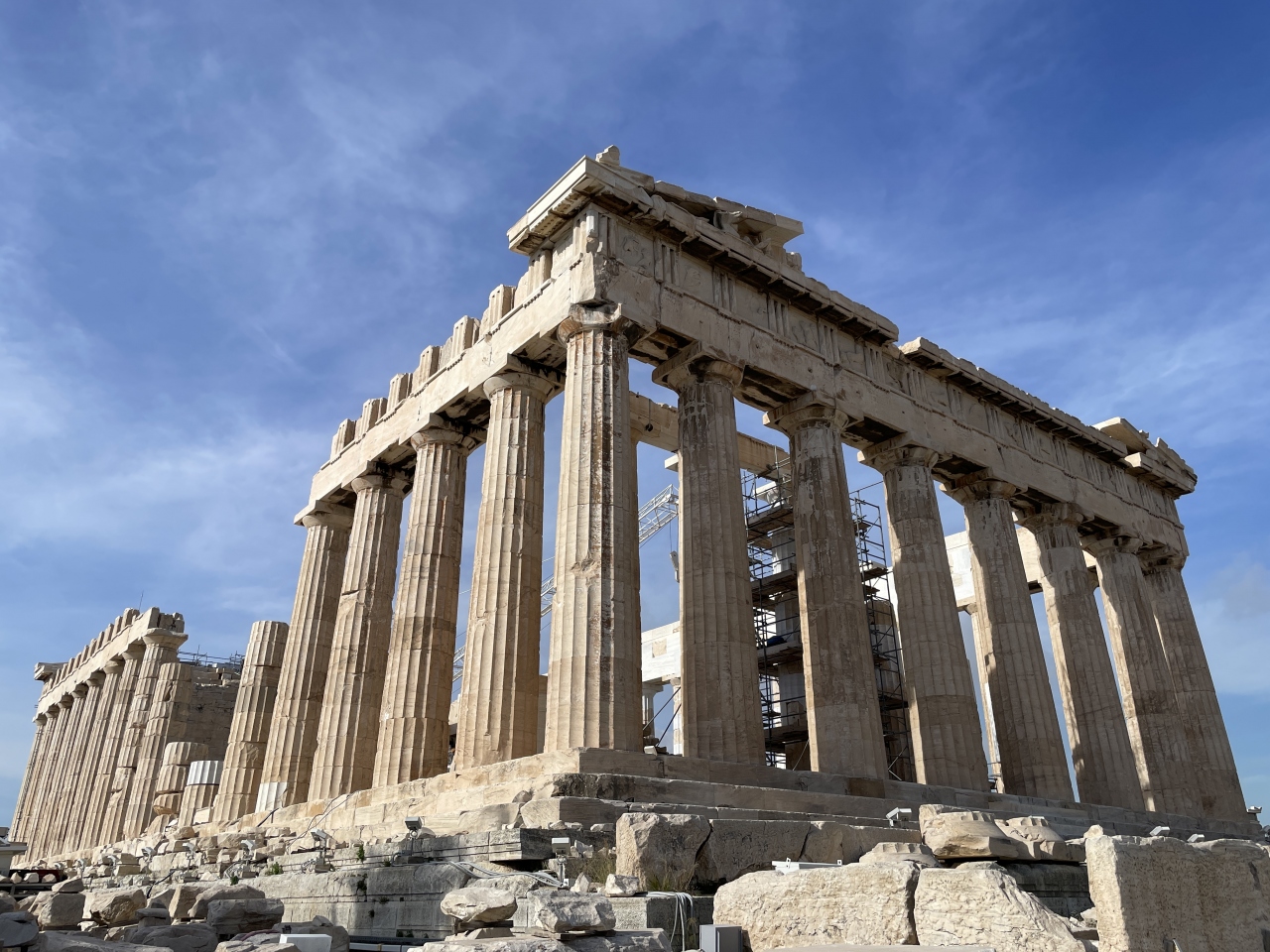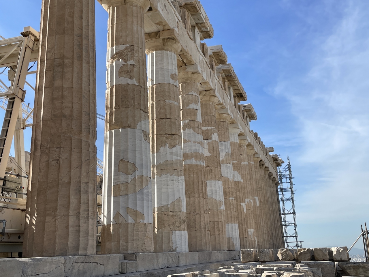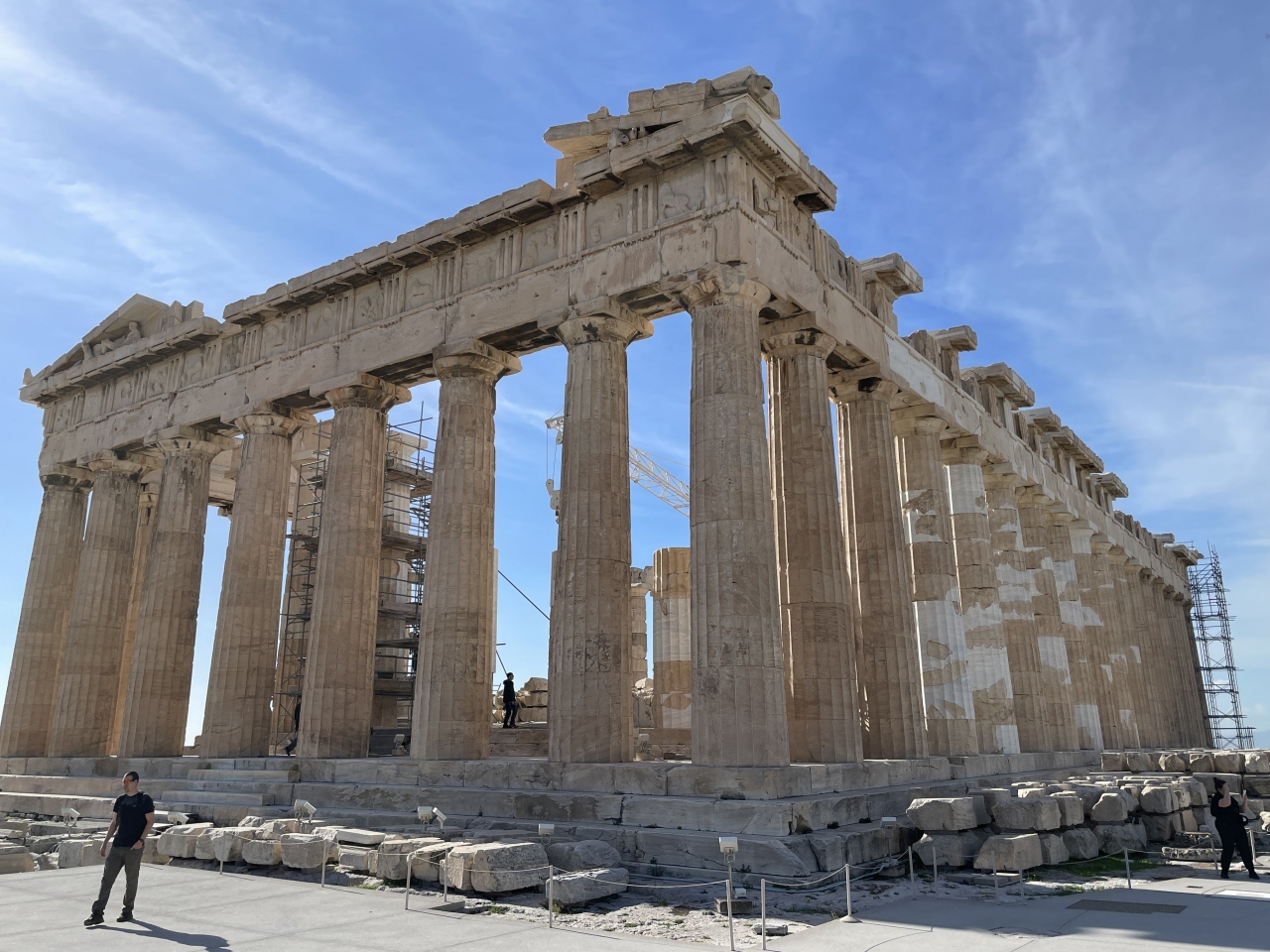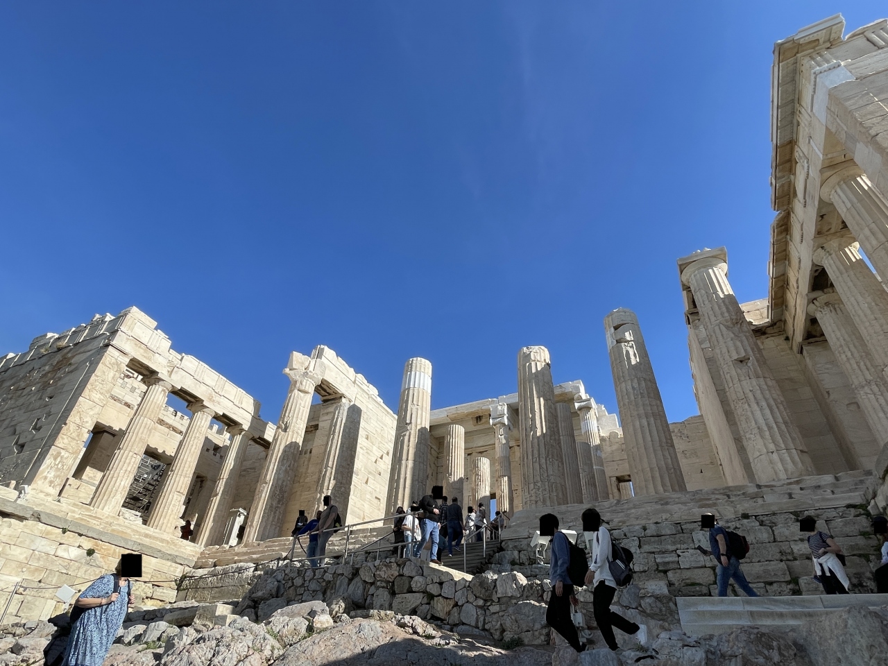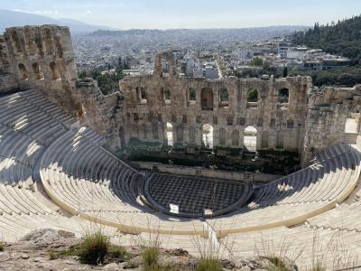 有名なパルテノン神殿の他にアテナ・ニケ神殿、エレクティオン、ディオニソス劇場などいくつかの建物が残っています。丘の上にあるので、坂道や階段を10分ほど登ります。さえぎるものがないので、昨年45℃を超えた夏には閉鎖されたようです。- 旅行時期