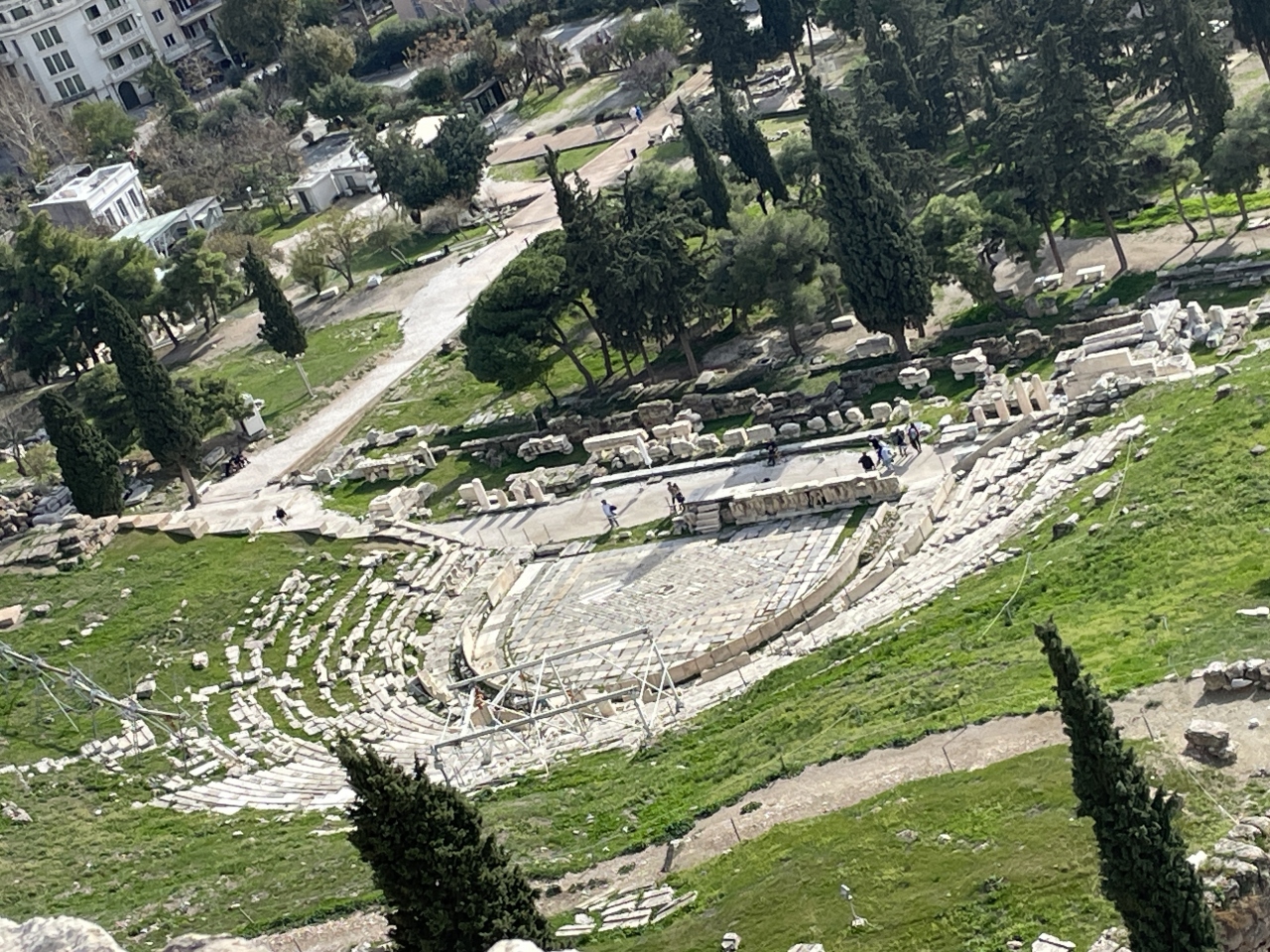 アテネのアクロポリスにある、斜面に建つ音楽堂です。
