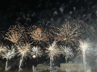 花火大会は人混みと遠くからしか見られないの途で敬遠していたのですが、ツアーなのでテーブルとイスが用意され、有料観覧エリアだったので人混みもなく、とても快適に見ることができました。お山の花火は打ち上げ場所と観覧席が近いことが有名だそうで、初めての花火大会は本当に大迫力で大感動でした。- 旅行時期
