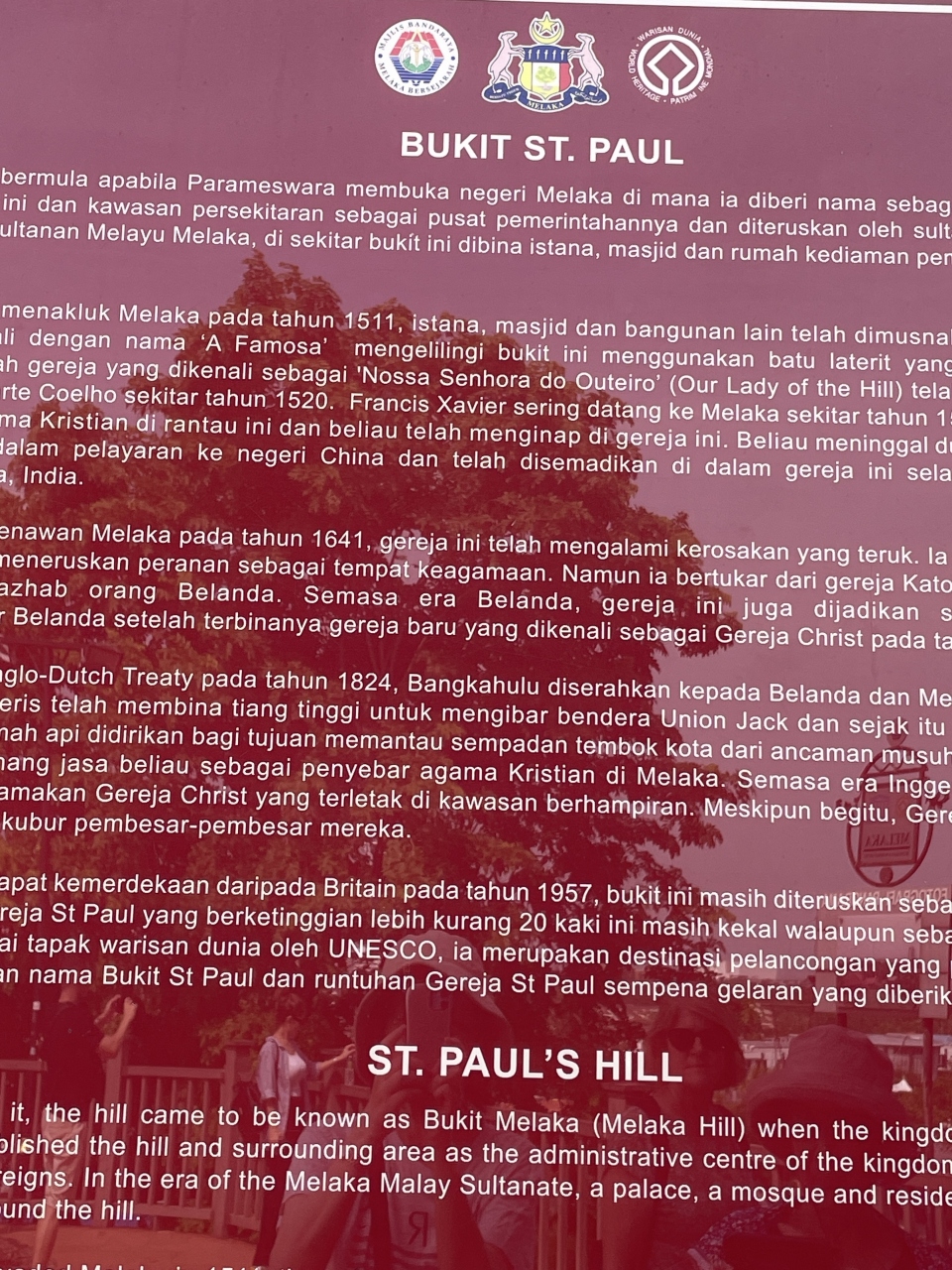 右手がないのは、雷で木が倒れてきてそれによって落とされてしまい、その後修復されていないからだそうです。高台にあるので、マラッカの町が一望できるようになっています。- 旅行時期
