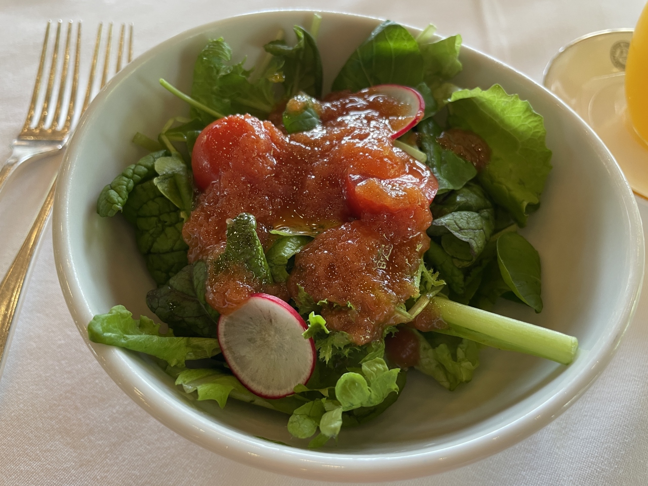 ツアーでホテルニューグランドに1泊して、前回は洋食の朝食をいただいたので、今回は和食にしてみました。結果、残念でした。和食としては普通においしいのですが、朝食なのにジュースも、ヨーグルトやフルーツのデザートもありません。前回の洋食の朝食は大満足だったので、やはり、ホテルでは洋食にするべきでした。