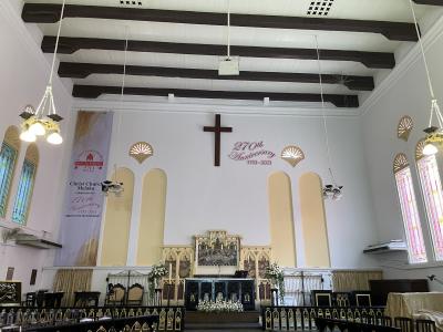 ツアーでマラッカのオランダ広場を訪れた際、フリータイムで入場しました。外側と違って中はひんやりしていて宗教の持つ厳かな雰囲気を感じることができました。外観より広い印象を受けました。小さなお土産物屋さんもありました。