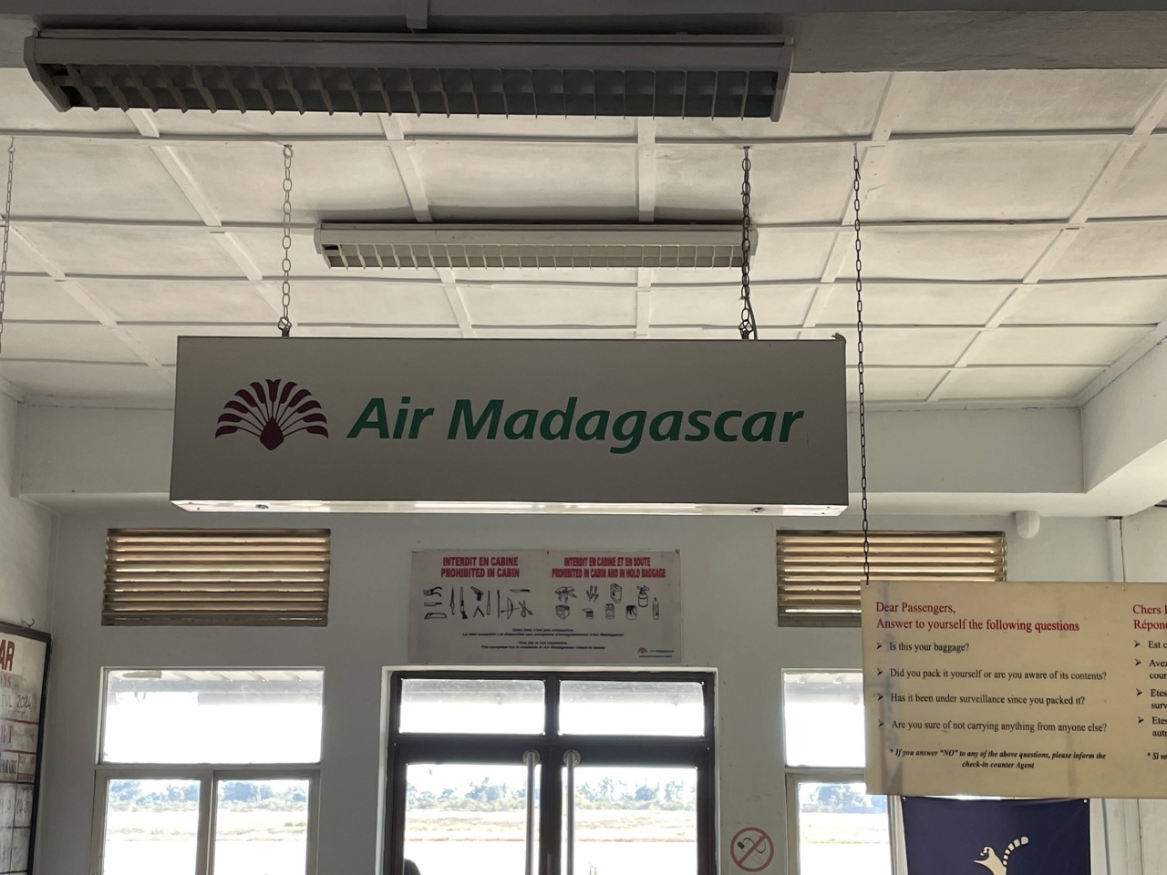 小さな空港で、エアコンもなく、ベンチも壊れているものが何ヵ所もありました。