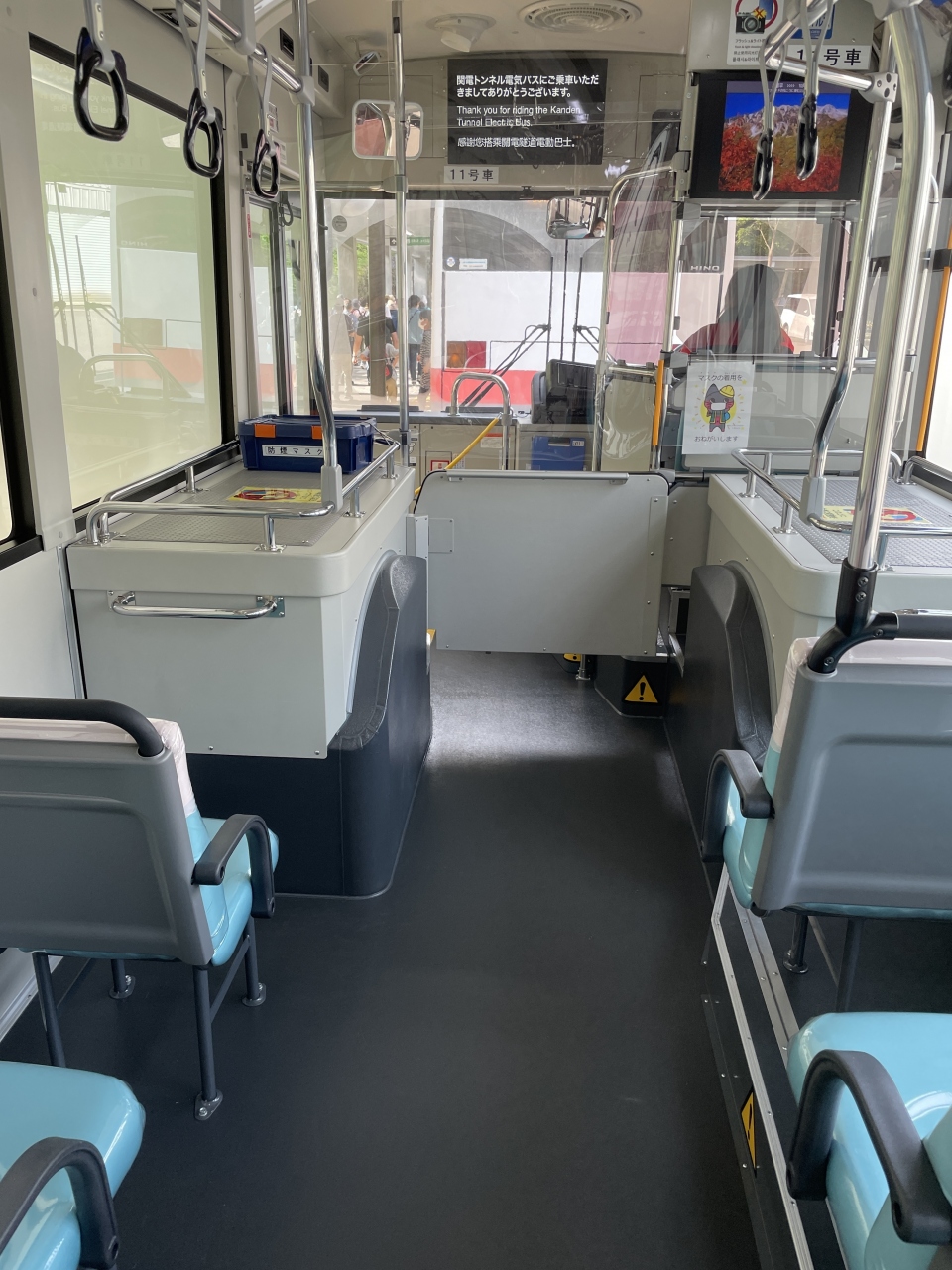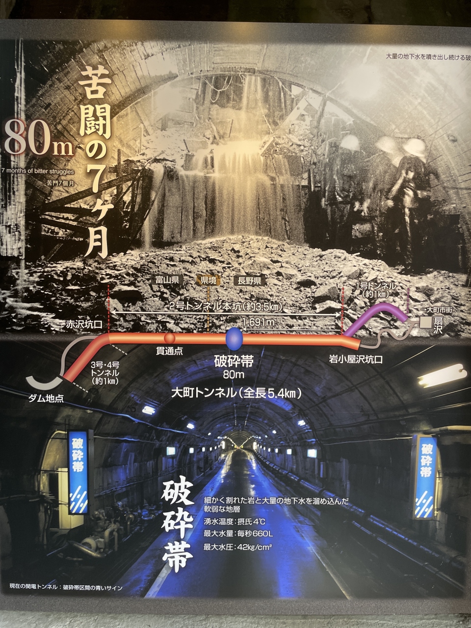 立山黒部アルペンルートの6つの乗り物のひとつで黒部ダムと扇沢間6.1kmを16分で走っています。ほぼトンネルの中ですが、貫通点があったり、難工事だった破砕帯80mを通ったり、長野県と富山県の県境を通るので、なかなか興味深かったです。