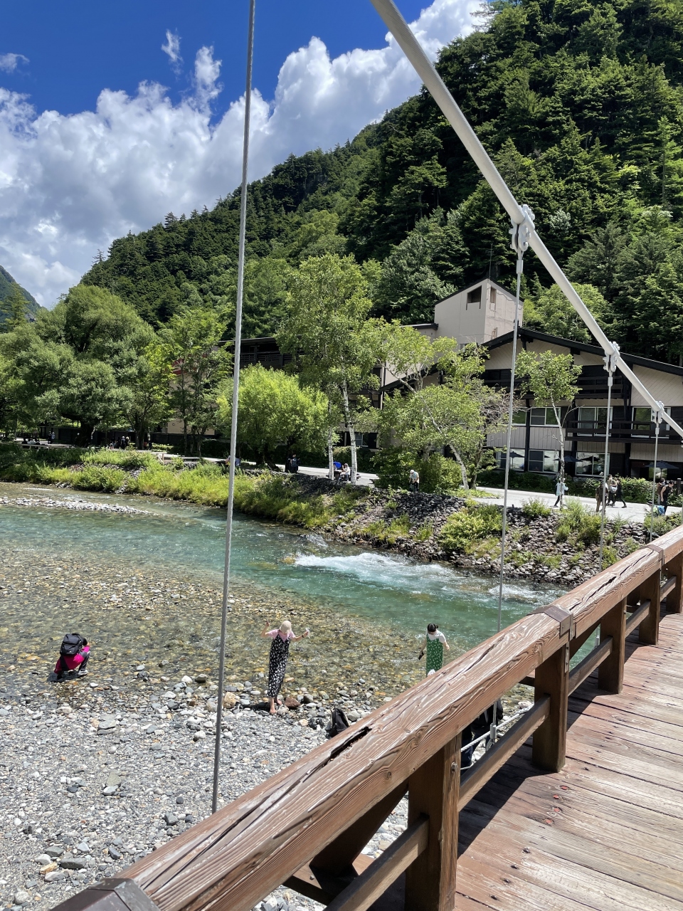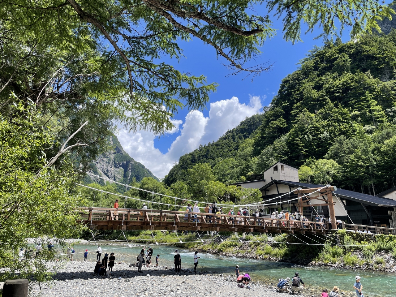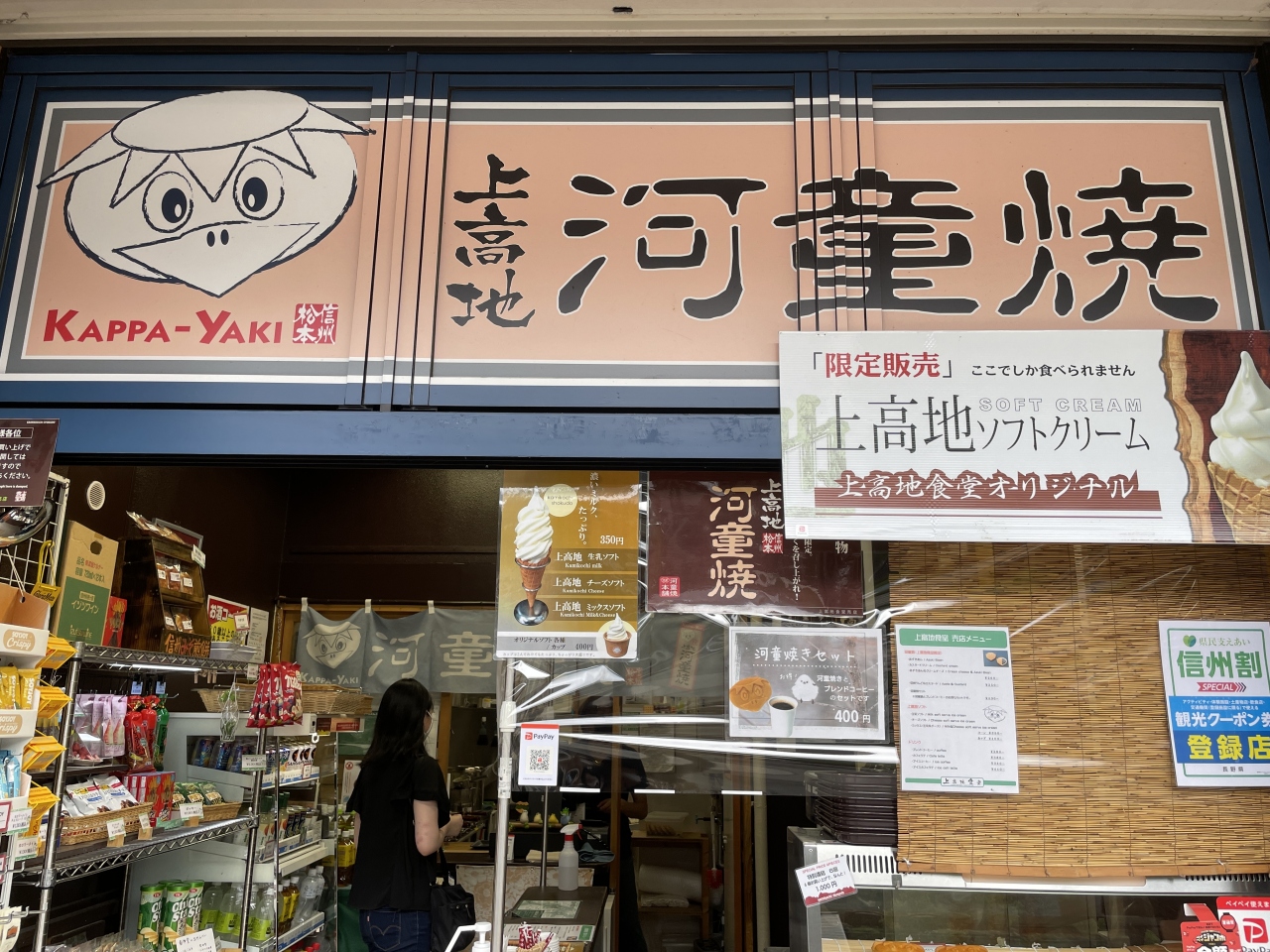 上高地バスターミナルに隣接する建物で、1階にたくさんのベンチが並んでおり、「黙食」と貼ってあるものの、飲食は可能なようです。私たちが行った時2階では上高地を写した写真展を開催していました。外側にも建物に沿って並ぶようにベンチが置かれています。フリーwifiも使えました。