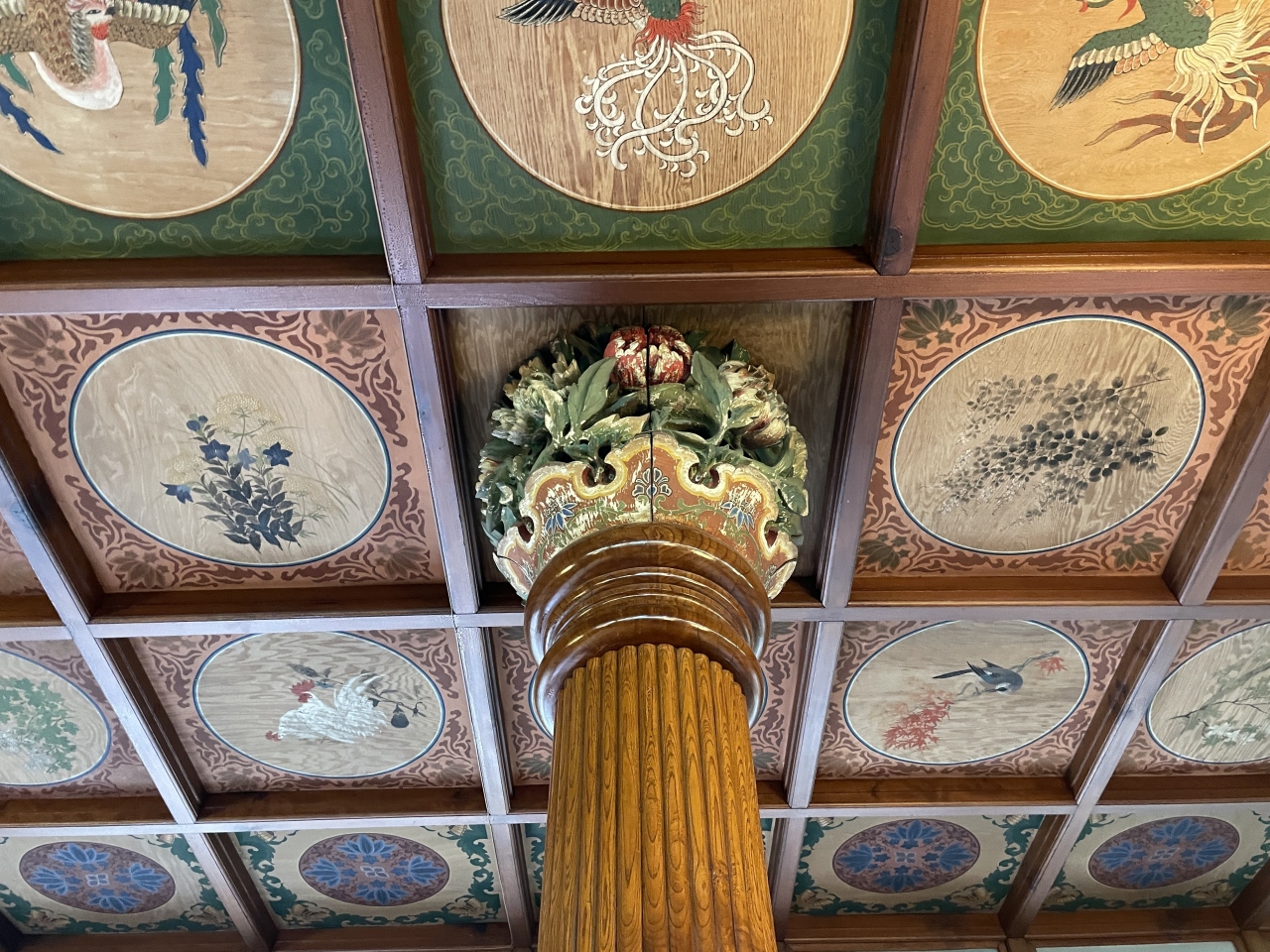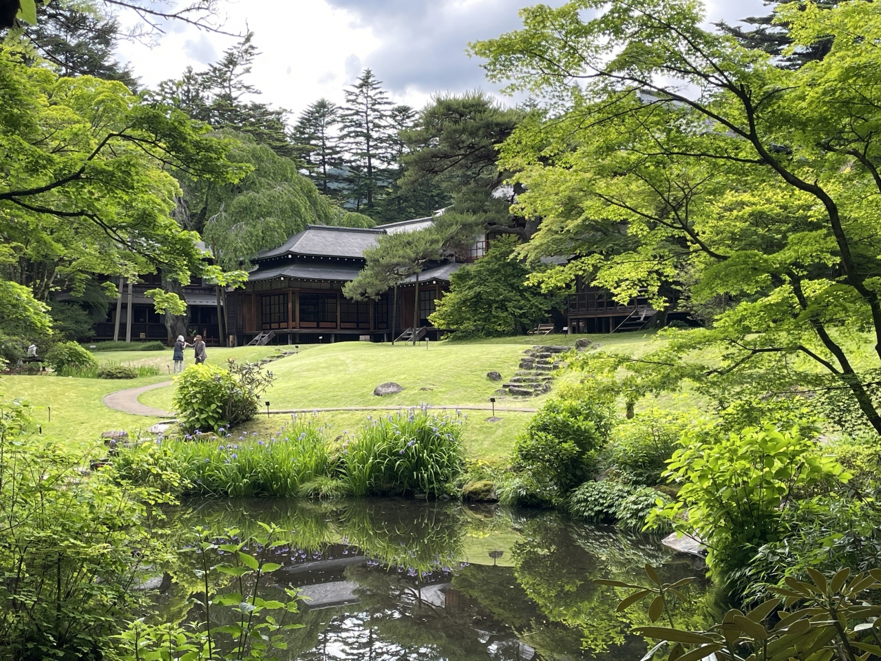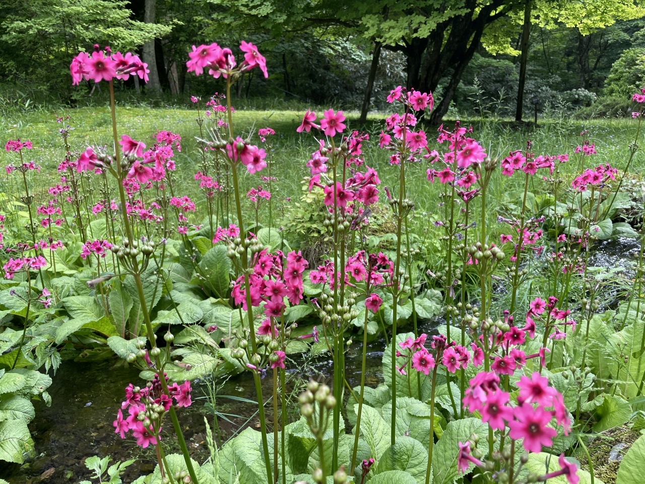 江戸、明治、大正と3つの時代の建物が全て廊下で繋がっている、100部屋ほどの御用邸です。大正天皇はしばらく滞在して執務も行っていたそうで、そのために造られた部屋も見ることが出来ます。平成の天皇陛下、上皇陛下も第二次大戦中に学習院の学友とこちらに疎開されていたそうです。お庭も、それほど広くありませんが、6月は可愛らしいくりん草や、ヒオウギアヤメが咲いていて散策を楽しむことが出来ました。